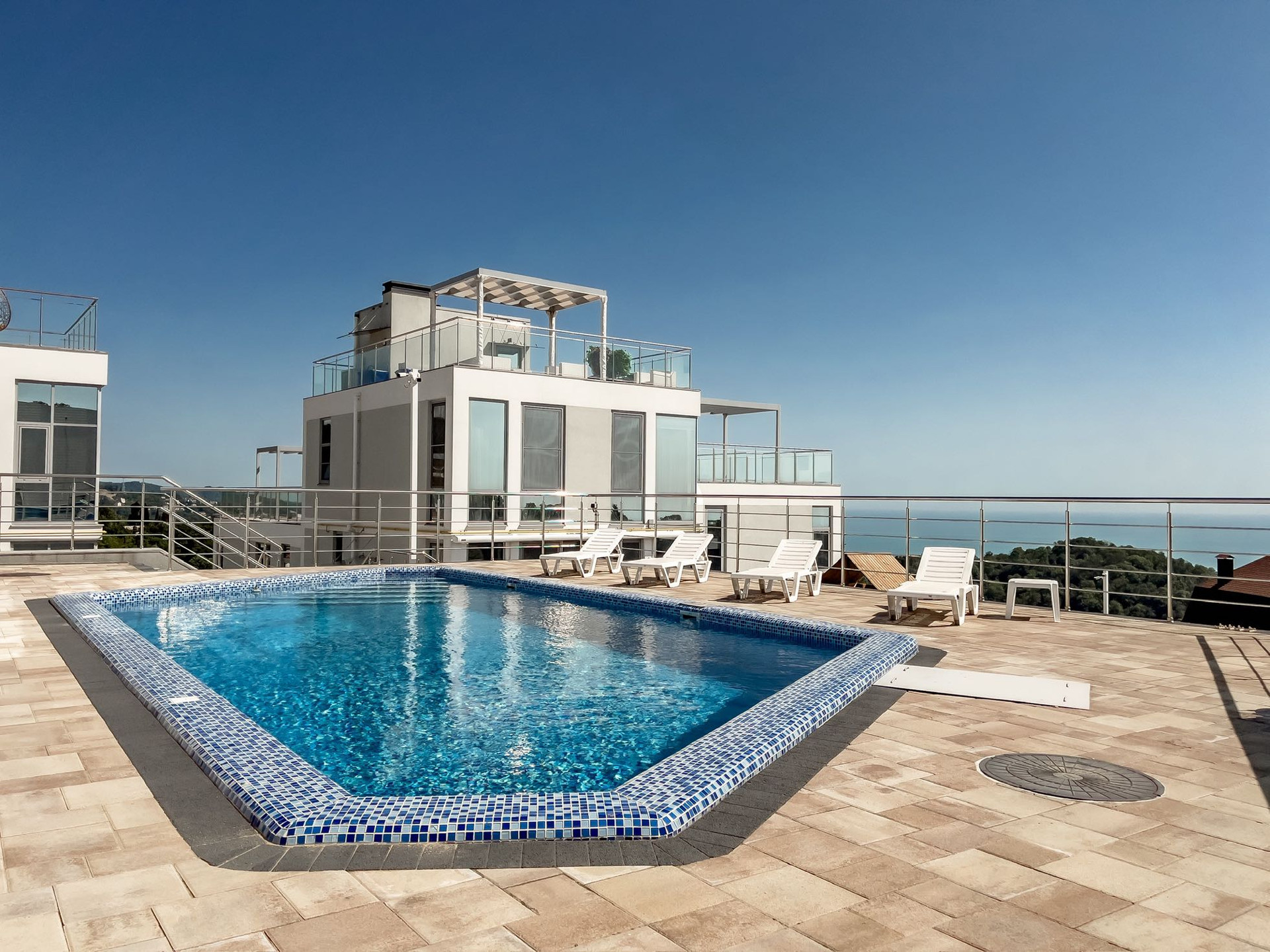 Большие террасы на 1 и 3 этажах.