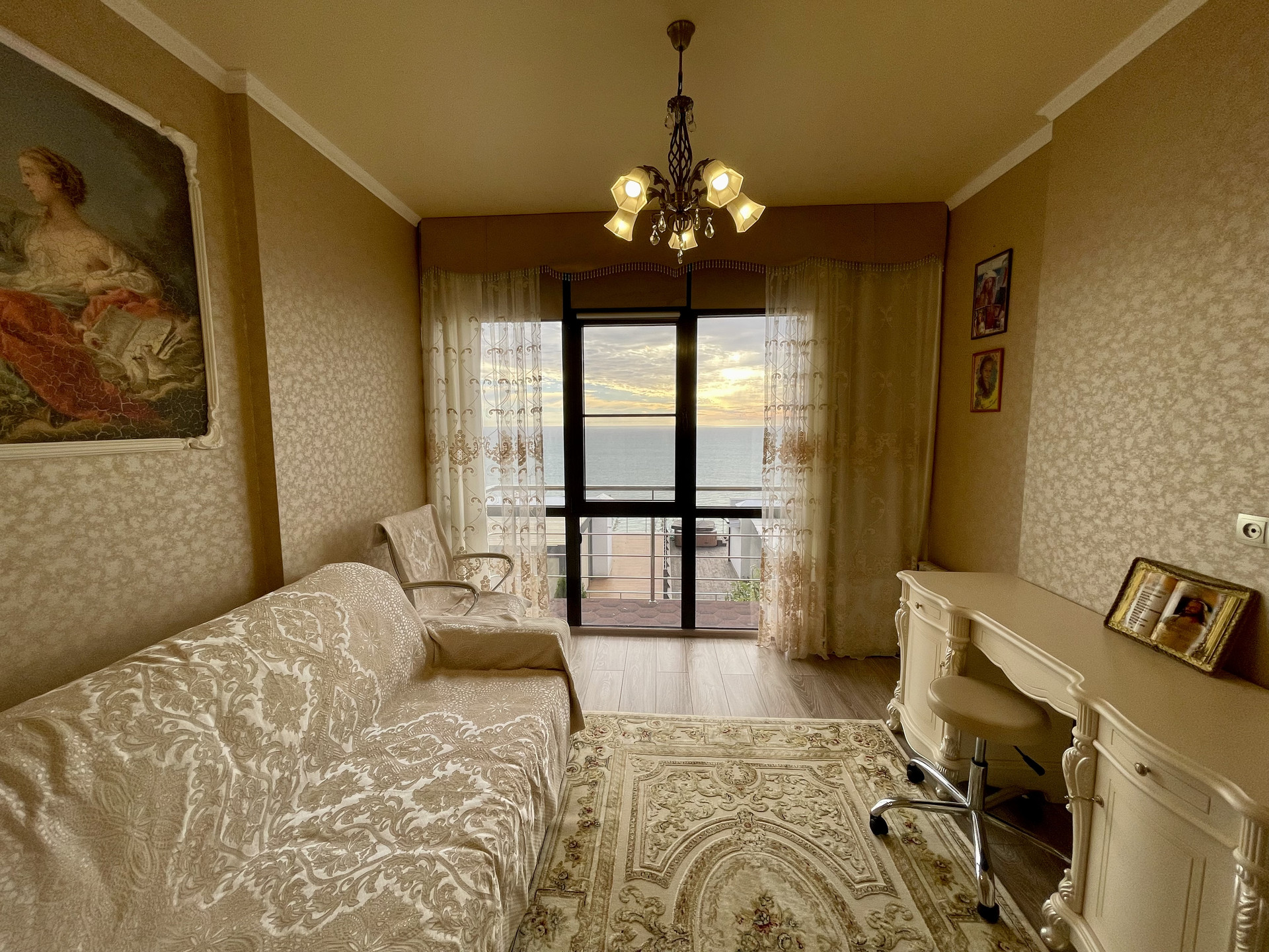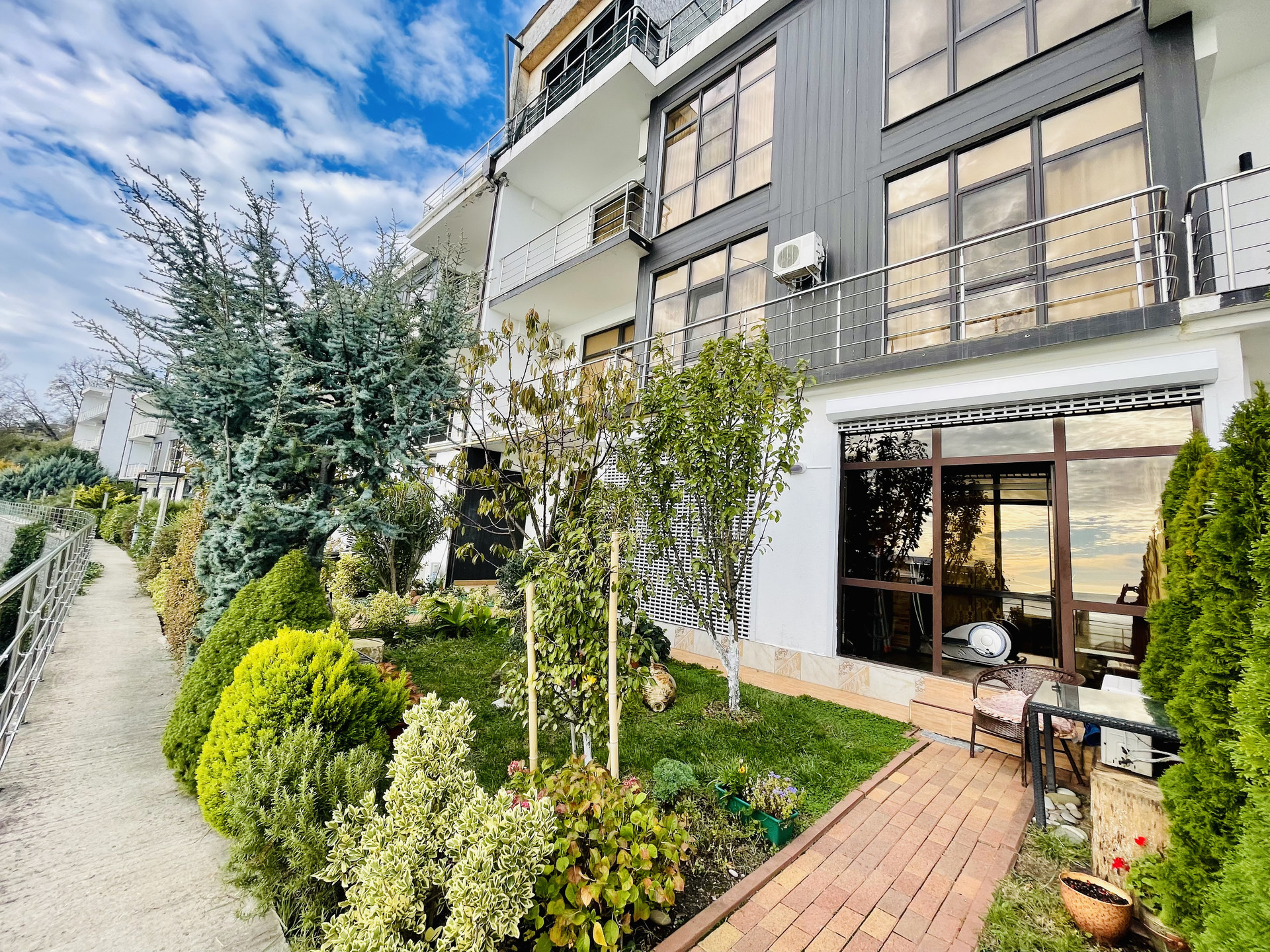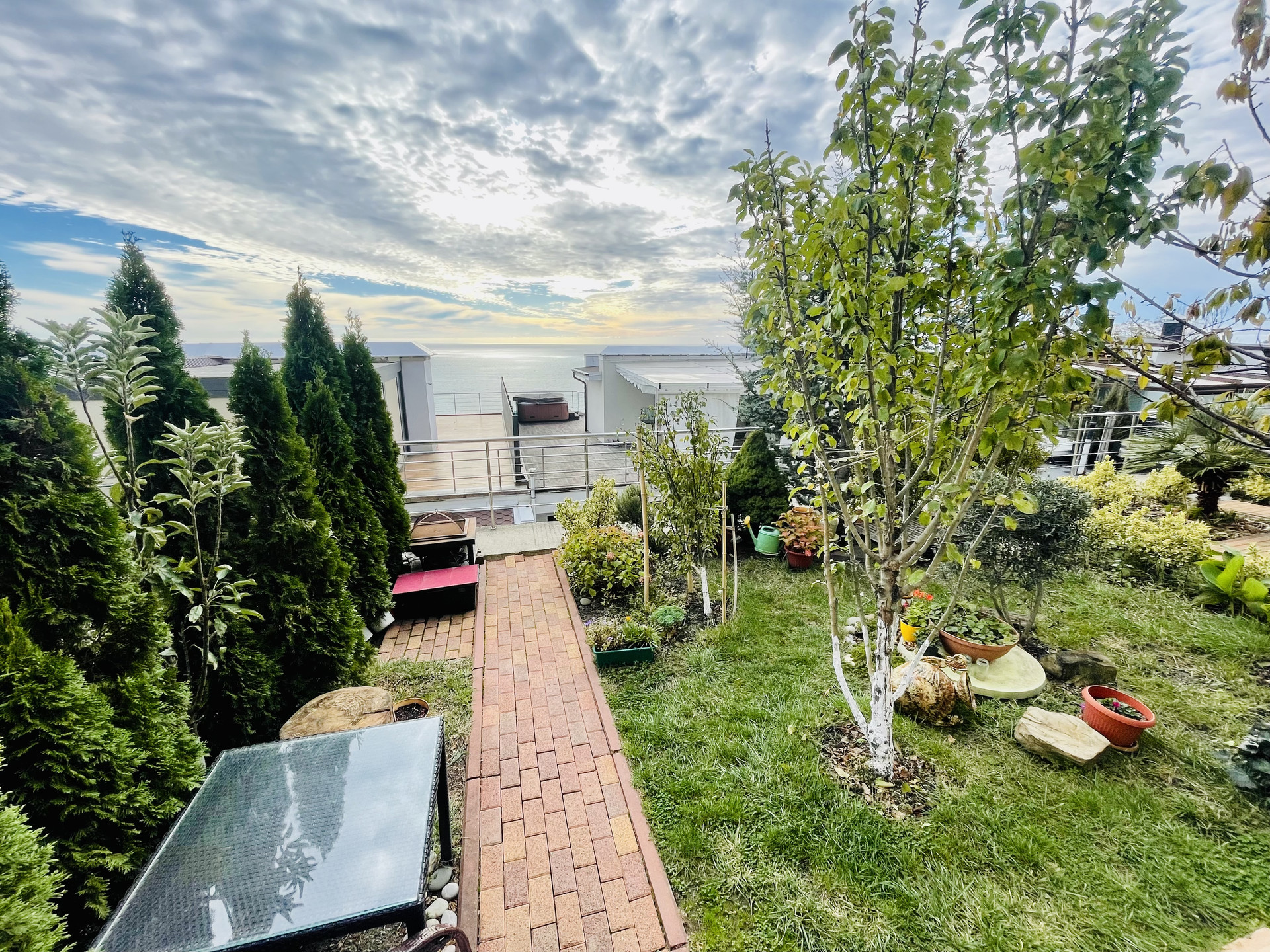 Квартира двух этажная с собственной террасой и жилой лоджией, отличные виды на море, балкон вдоль всего второго этажа, зеленый благоустроенный участок и отдельный вход. Оборудован теплый пол на первом этаже и батареи на втором. Установлен газовый и электрический котел, плита на кухне так же и газовая и электрическая. Коммуникации центральные, есть кондиционеры. Квартира с качественным ремонтом в классических тонах. Есть вся встроенная мебель и техника. Что останется в подарок покупателю - обсуждается на просмотре.
