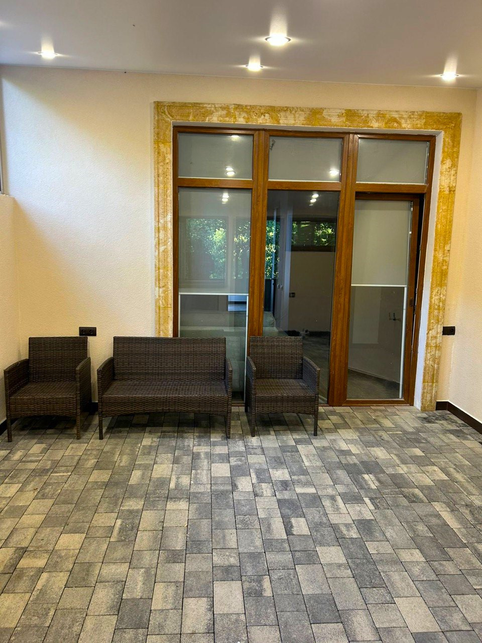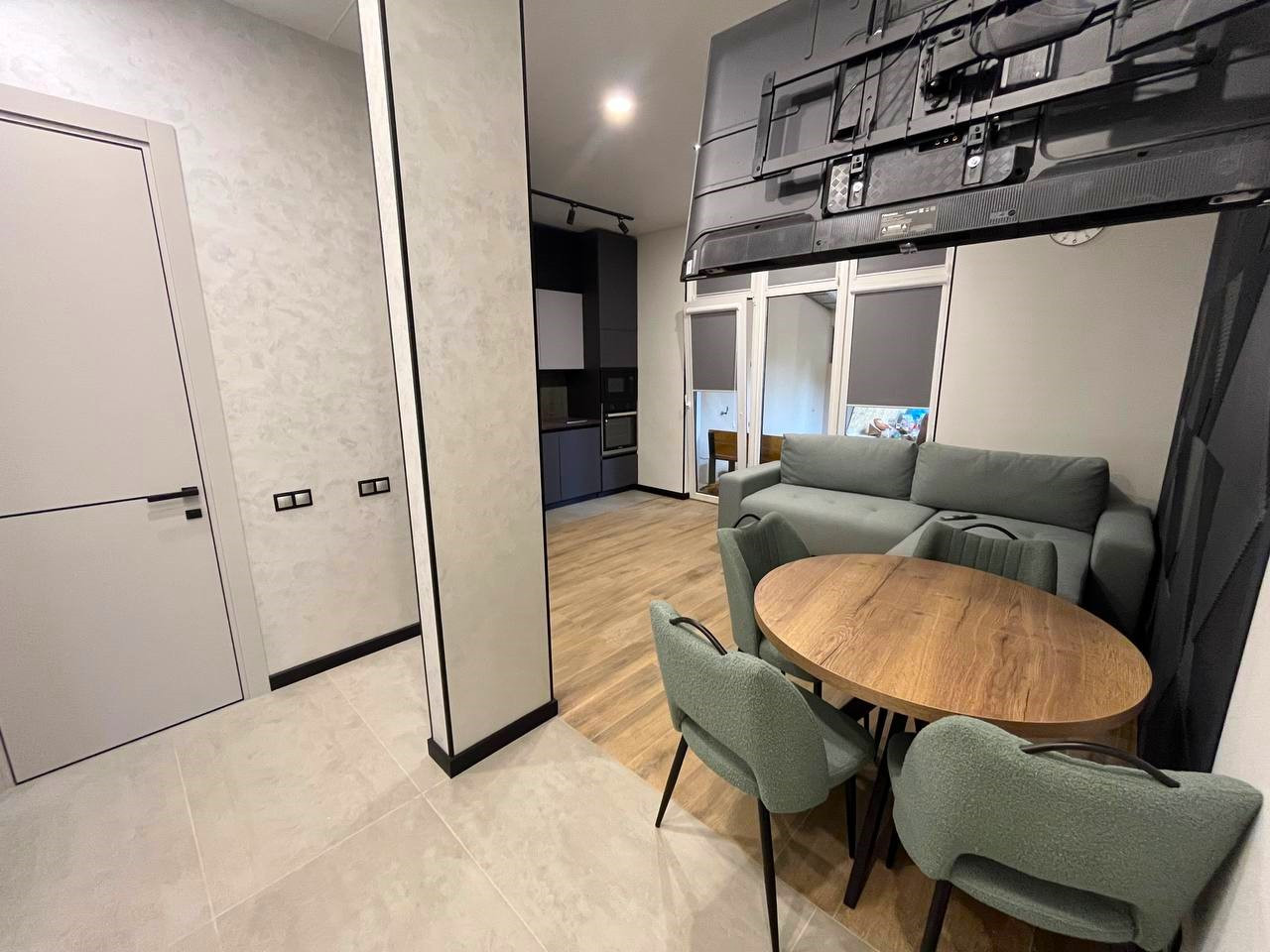 Сделан новый дизайнерский ремонт (дизайн проект есть), с использованием дорогих строительных и отделочных материалов. Вся мебель была сделана под заказ. Таун-хаус поделен на большую Кухня-гостиная , Спальня с гардеробной зоной, сан/узел и большая терраса с навесом. Проведен тёплый пол, много световых точек, большие витражные окна.