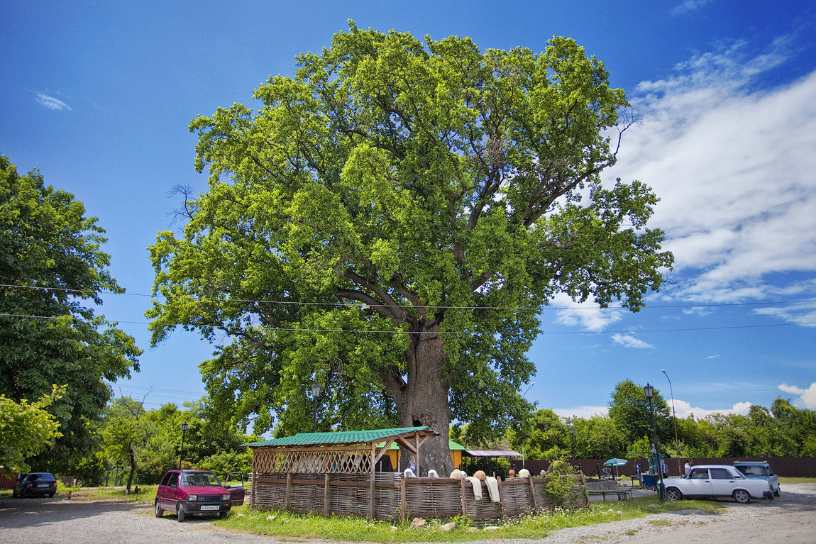 Высота дерева составляет 35 метров, диаметр кроны составляет 27 метров, а диаметр ствола — около двух метров. Чтобы сфотографировать дерево, придется отойти подальше дабы запечатлить его полностью.