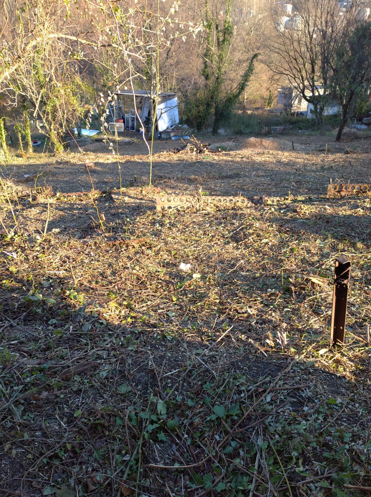 Участок почищен, небольшой уклон. 9 соток.