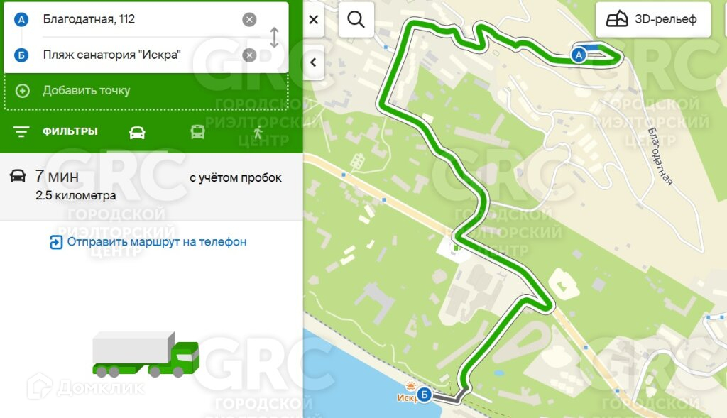 До пляжа 2,5 км или 7 минут на авто!