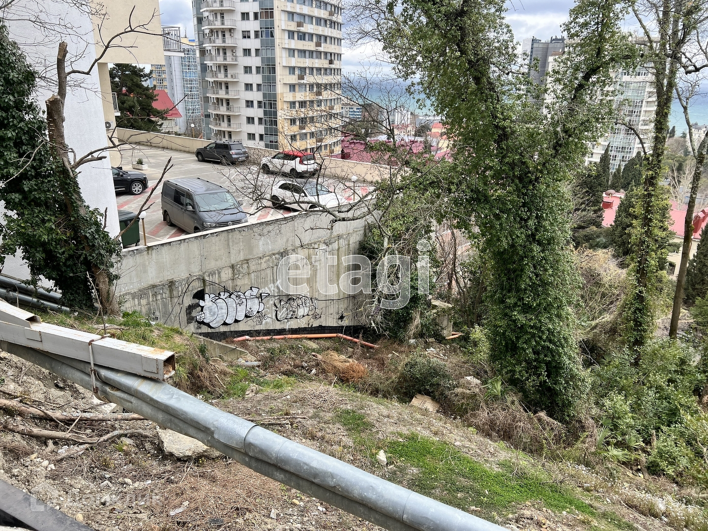 Участок видовой - море и морской порт, город, соседние дома.