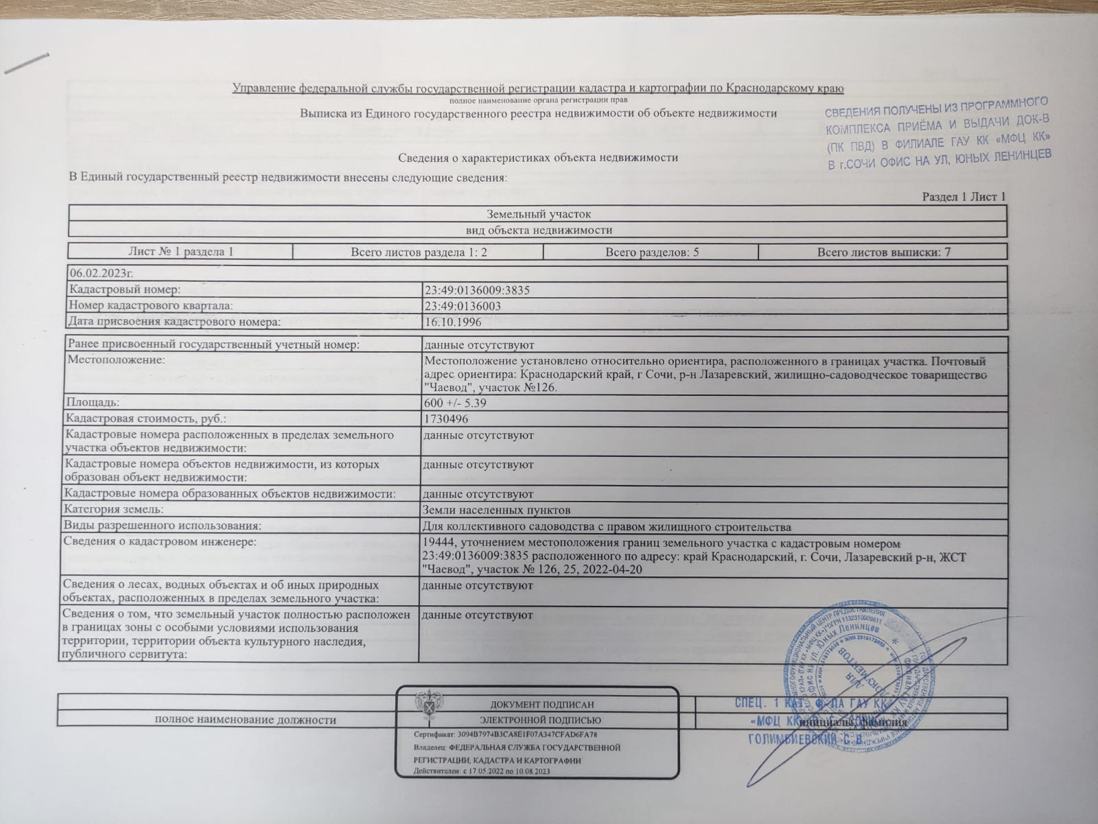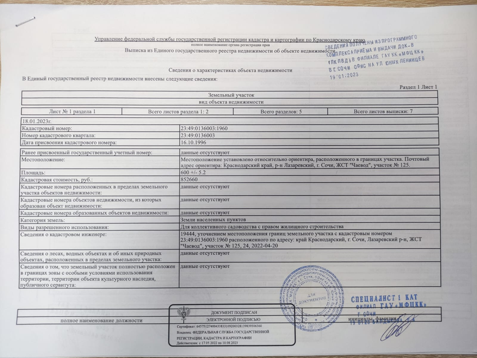 № 125 (к/н 23:49:0136003:1960) 600 м2