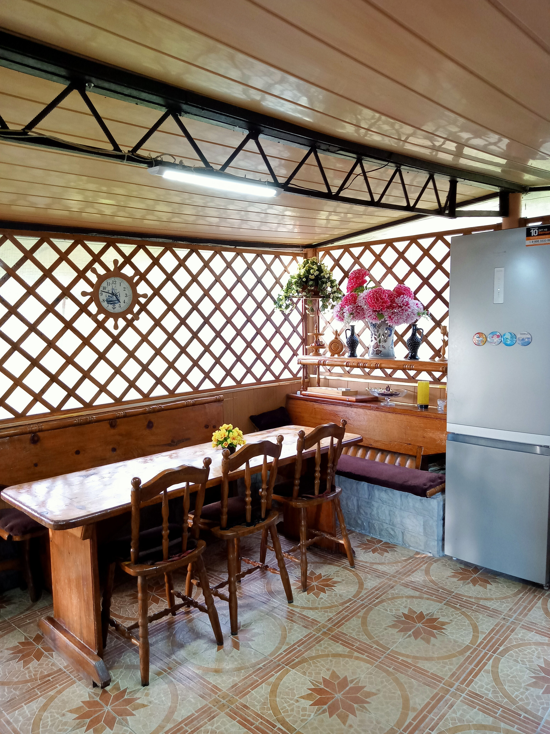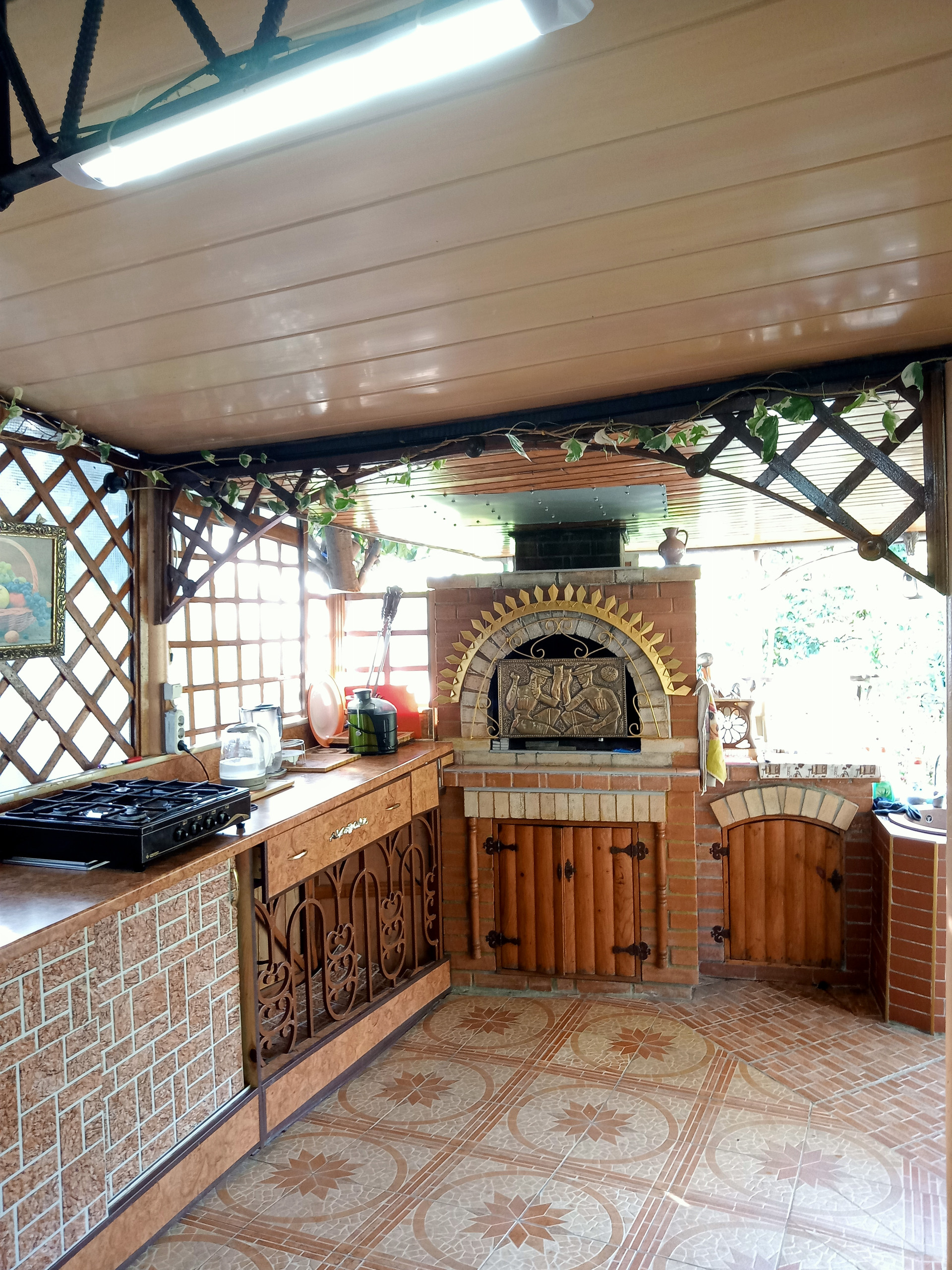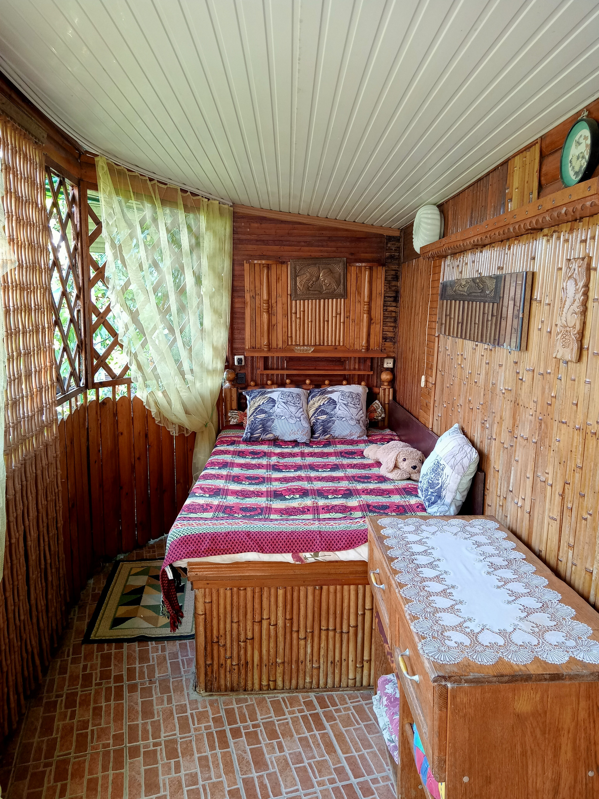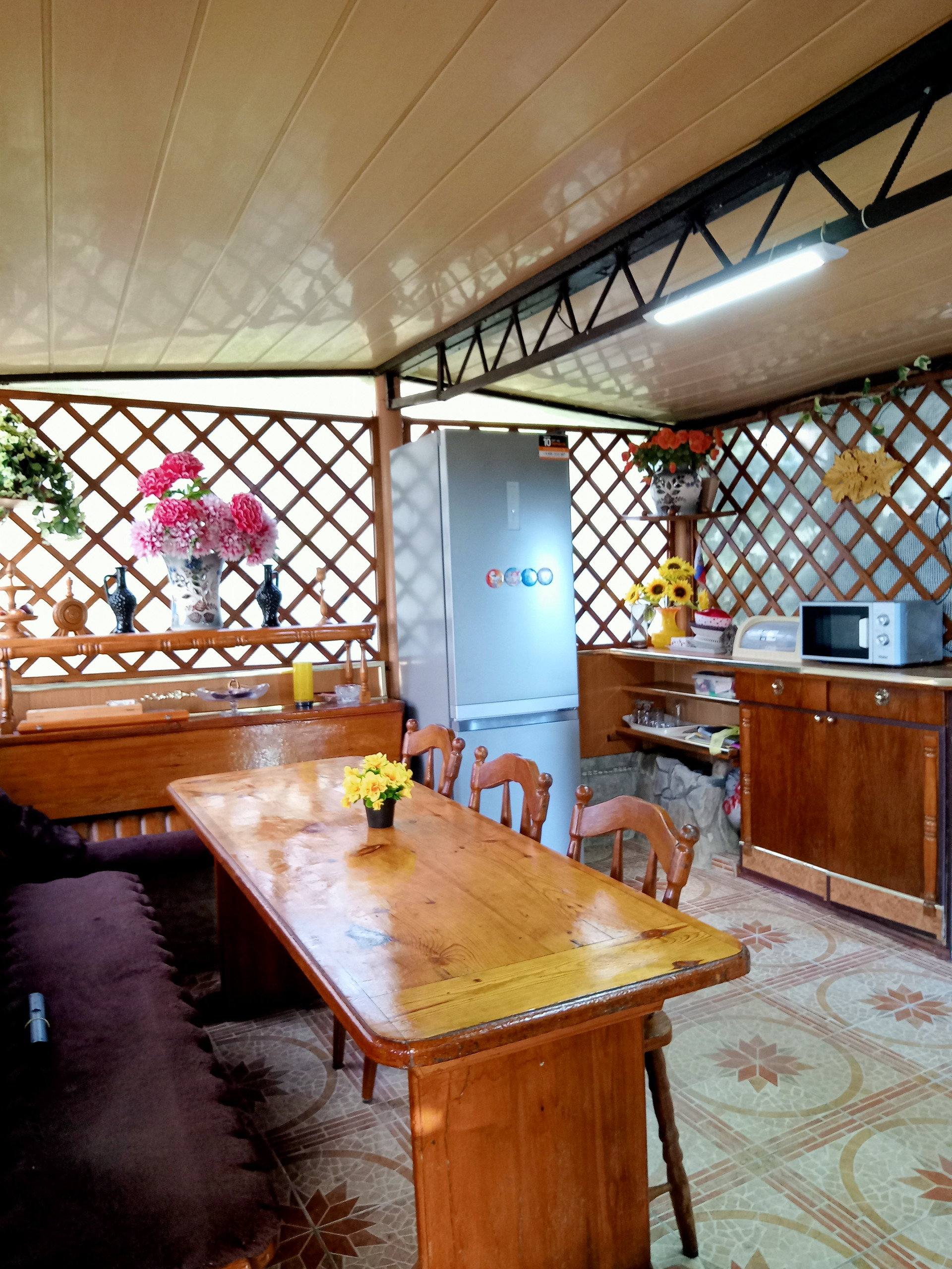 В Доме 4 комнаты и  одна из них открытая ( под навесом на свежем воздухе)