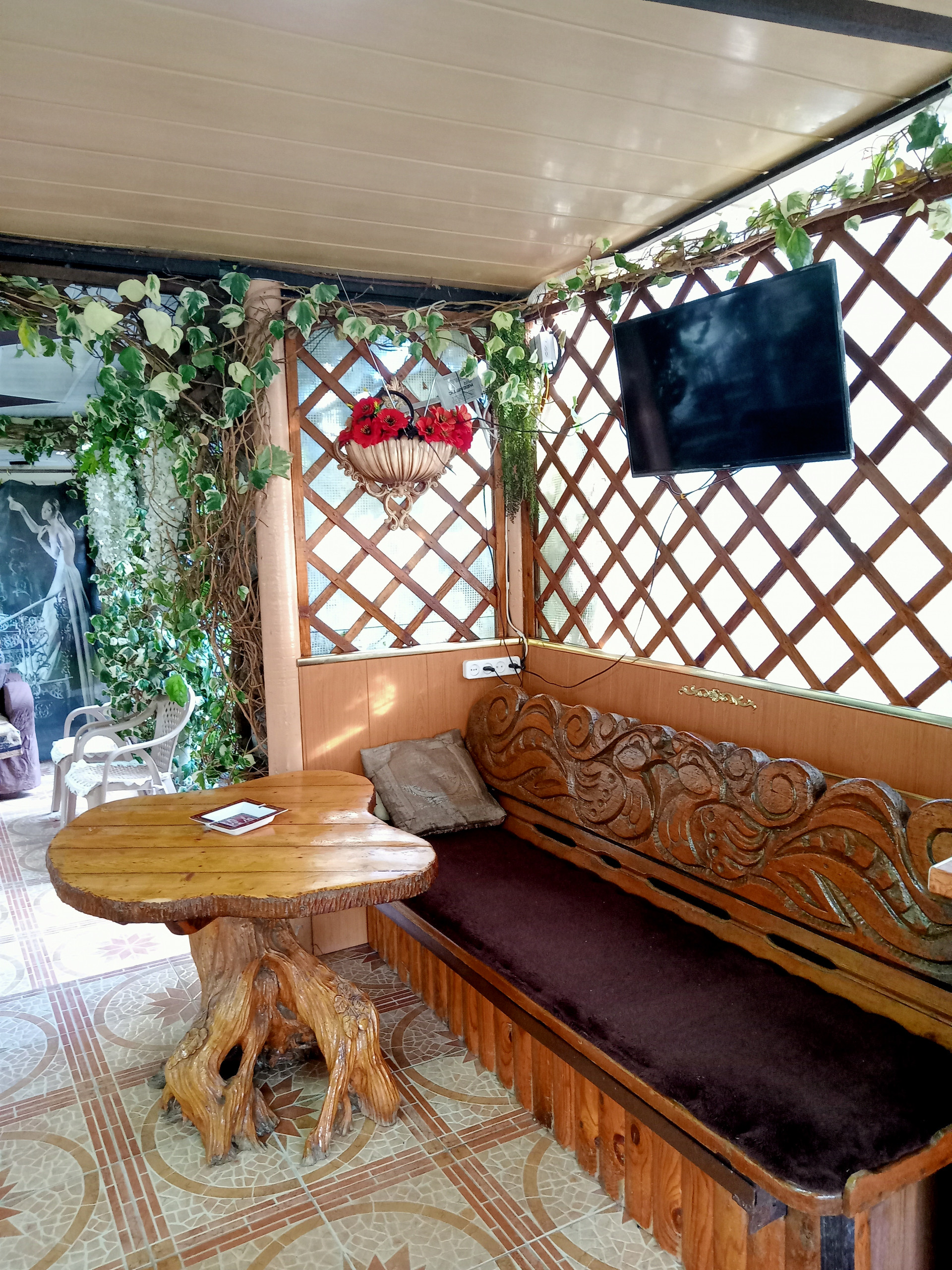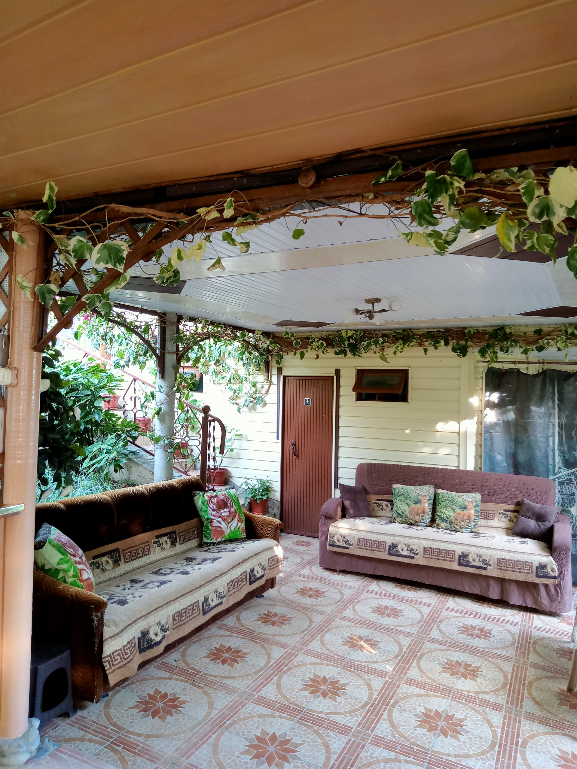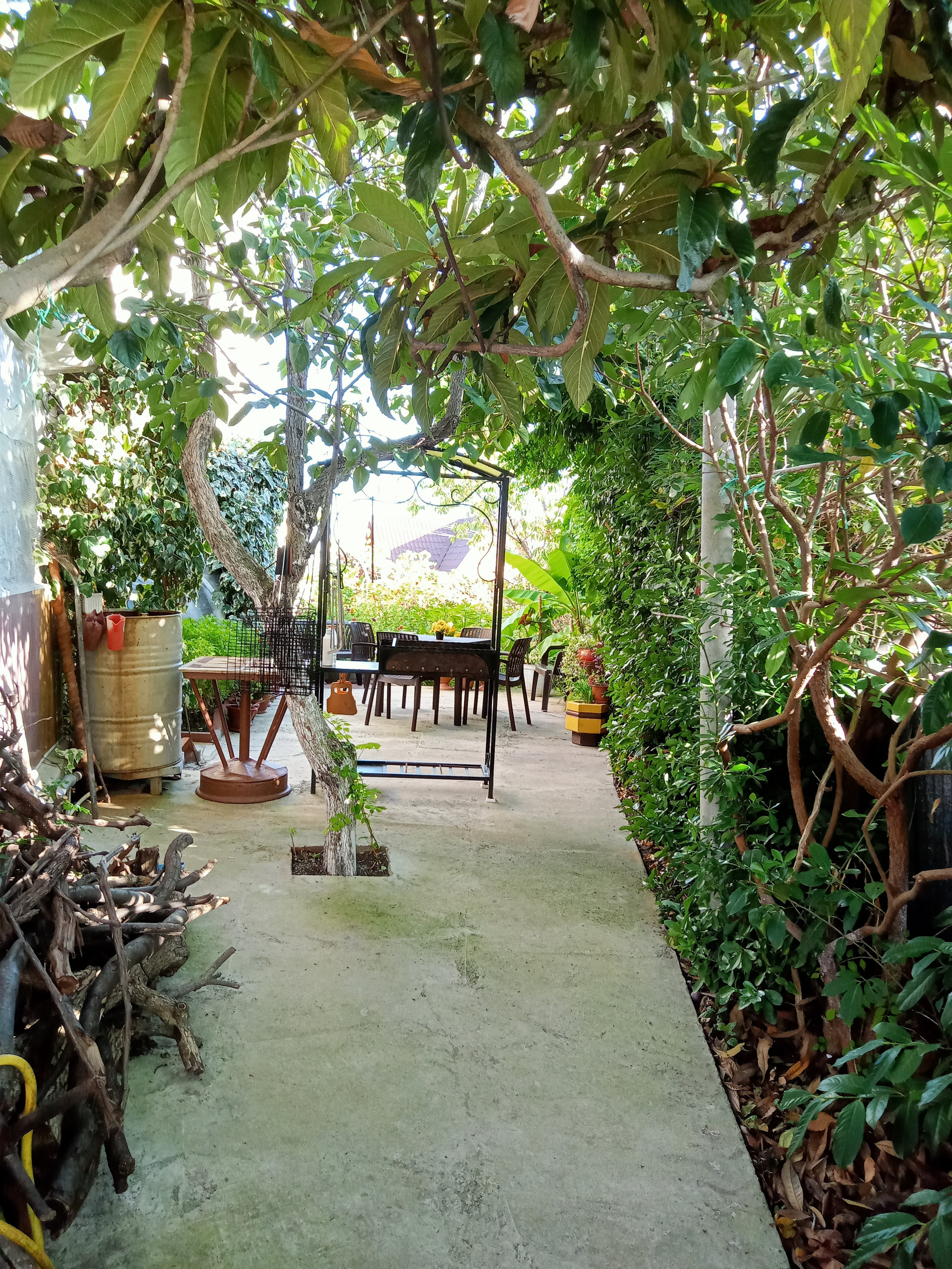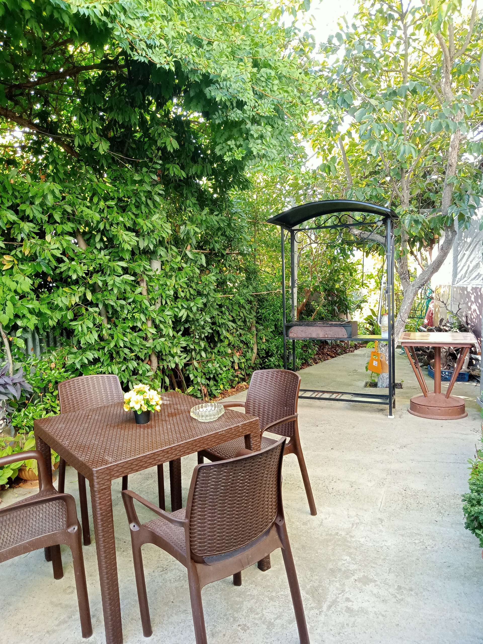 В Доме 4 комнаты и  одна из них открытая ( под навесом на свежем воздухе)