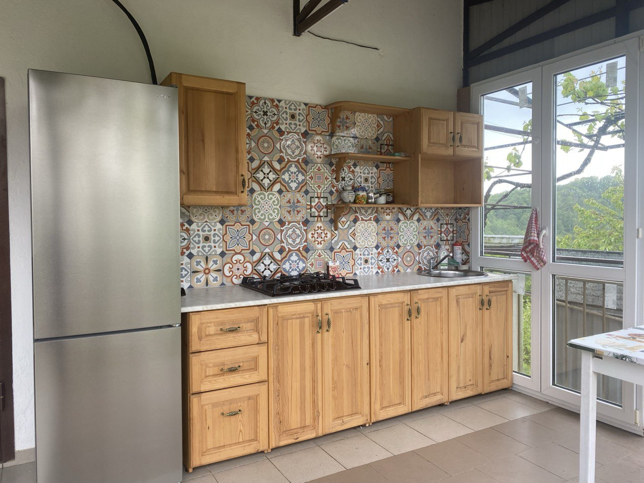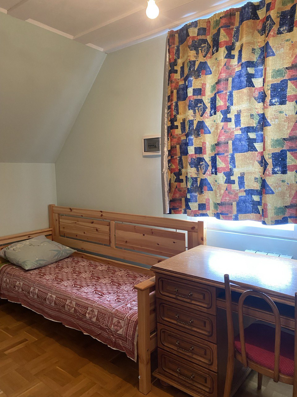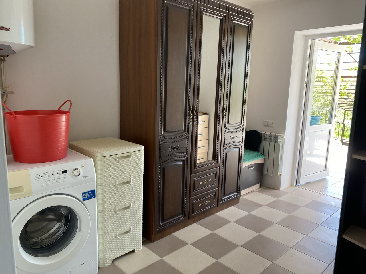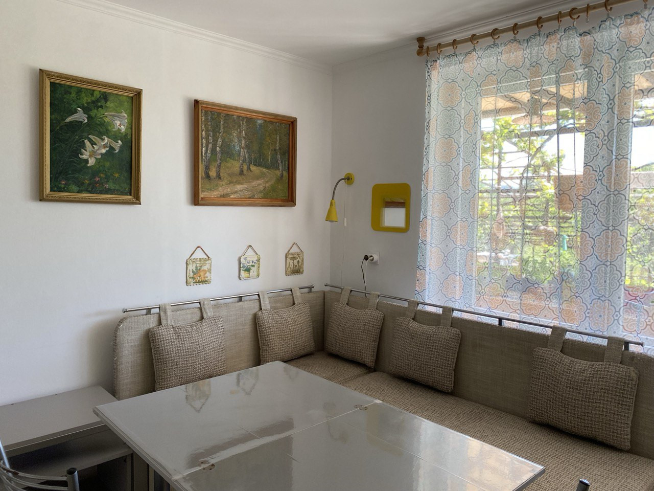 Комнаты в доме просторные, большой зал около 40 кв. м., на каждом этаже санузлы, горячая вода круглосуточно, полы и окна из дерева. Кондиционеры, стиральная машинка-автомат, телевизор, все необходимое для проживания имеется.