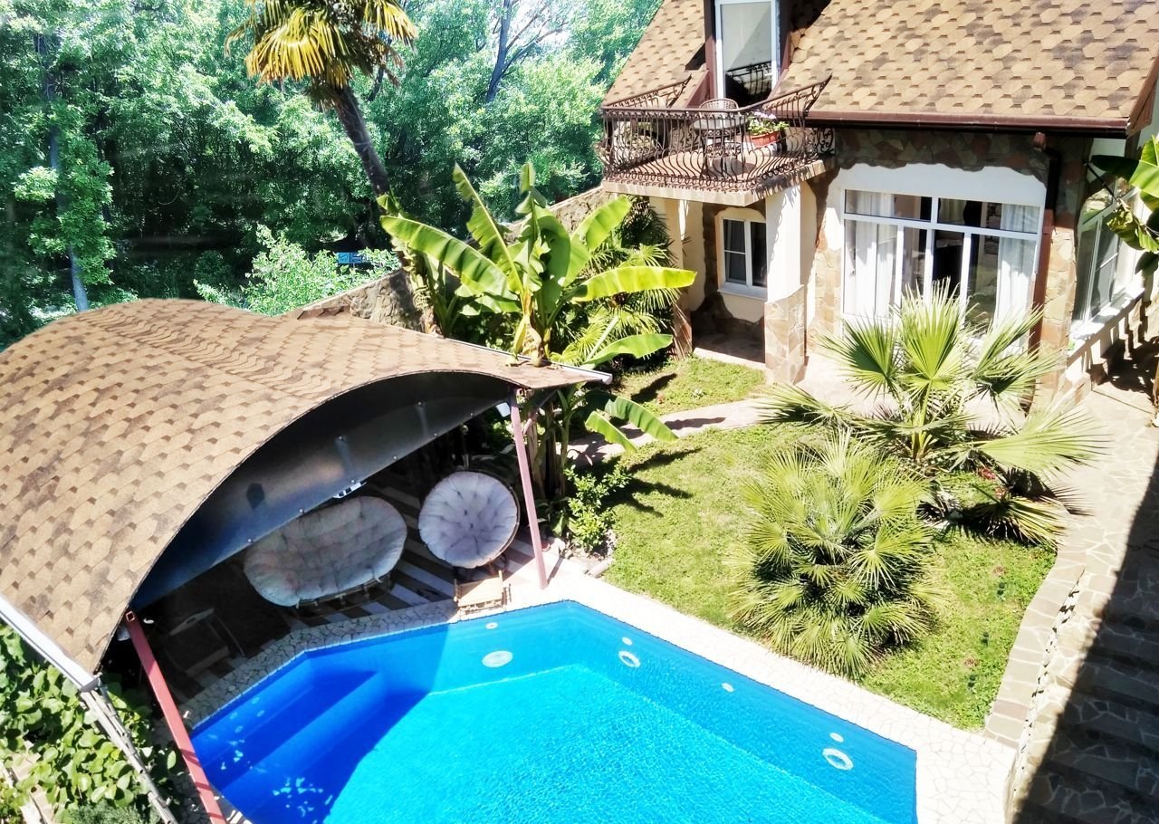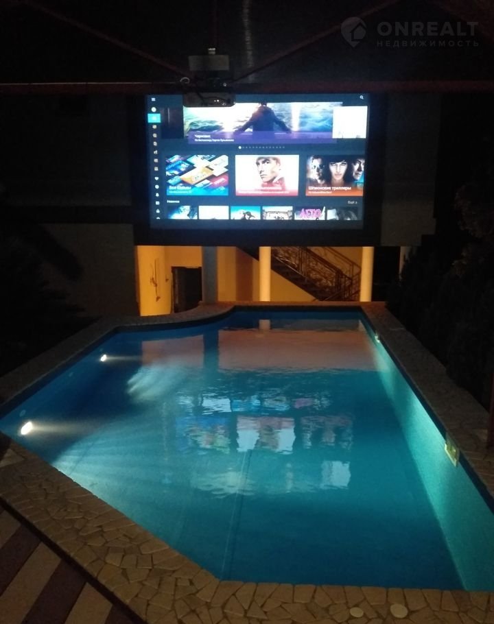 На территории к вашим услугам открытый бассейн, у бассейна крытая беседка с лежаками, диваном и креслом из натурального ротанга, журнальный столик и летний кинотеатр с Нi-Fi аудиосистемой. Экран кинотеатра находится прямо над бассейном, благодаря чему можно смотреть видео во время плавания. На всей территории и в доме работает сеть доступа в Intеrnеt посредством высокоскоростного Wi-Fi подключенного к оптике. На арендуемой территории гости находятся самостоятельно, без присутствия посторонних людей и навязчивого внимания владельцев.
