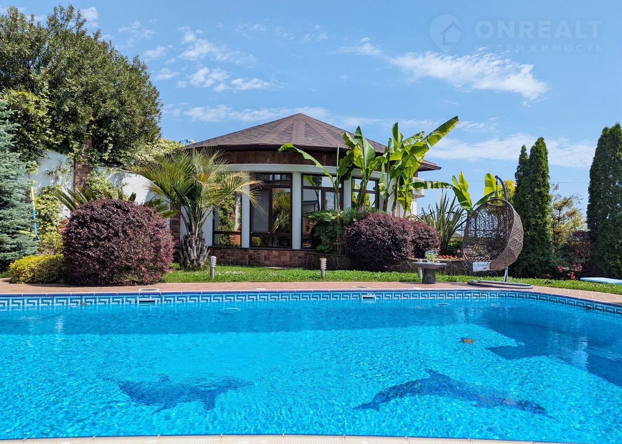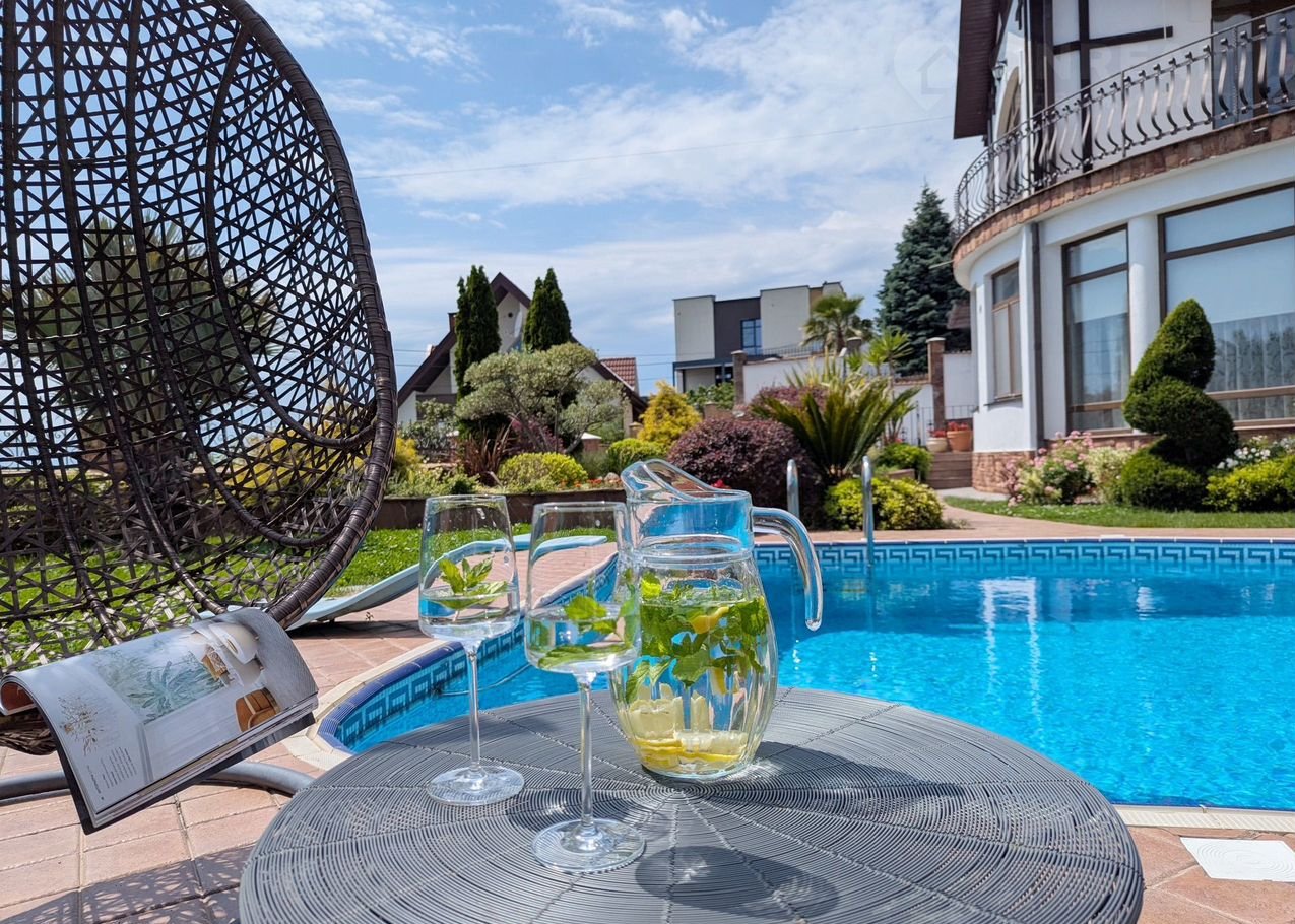 Есть бассейн, с помостом для прыжков, качели, летняя терраса с зоной барбекю.