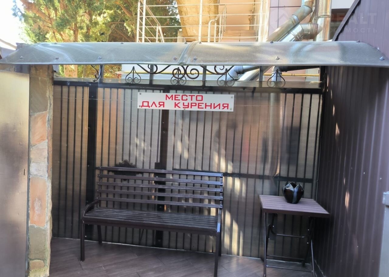 На втором этаже отличная кухня (10 кв.м.) со всем необходимым для приготовления пищи, с балкончиком и столиком с видом на парк. Есть зона курилки.