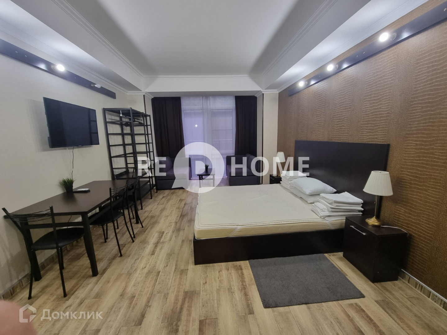 Есть все для комфортного проживания: выполнен новый ремонт, кровать, диван, шкаф, комод с зеркалом, телевизор и интернет, Также есть полный кухонный гарнитур, холодильник, микроволновка, набор посуды.