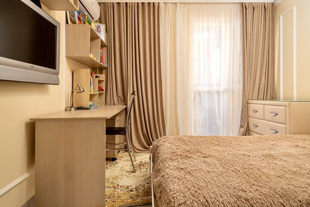 В квартире остаётся вся необходимая техника и мебель. В зале раскладной диван и стенка для хранения, в спальне двуспальная кровать и шкаф, в детской кровать, письменный стол и также шкаф. Посуда и постельное предоставляется. Остальное готовы предоставить по договорённости.