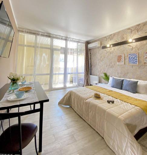 Вашему вниманию 44 кв. М., с выделенной кухней, спальней, санузлом, балконом и всем что должно быть в апартаменте комфорт класса!