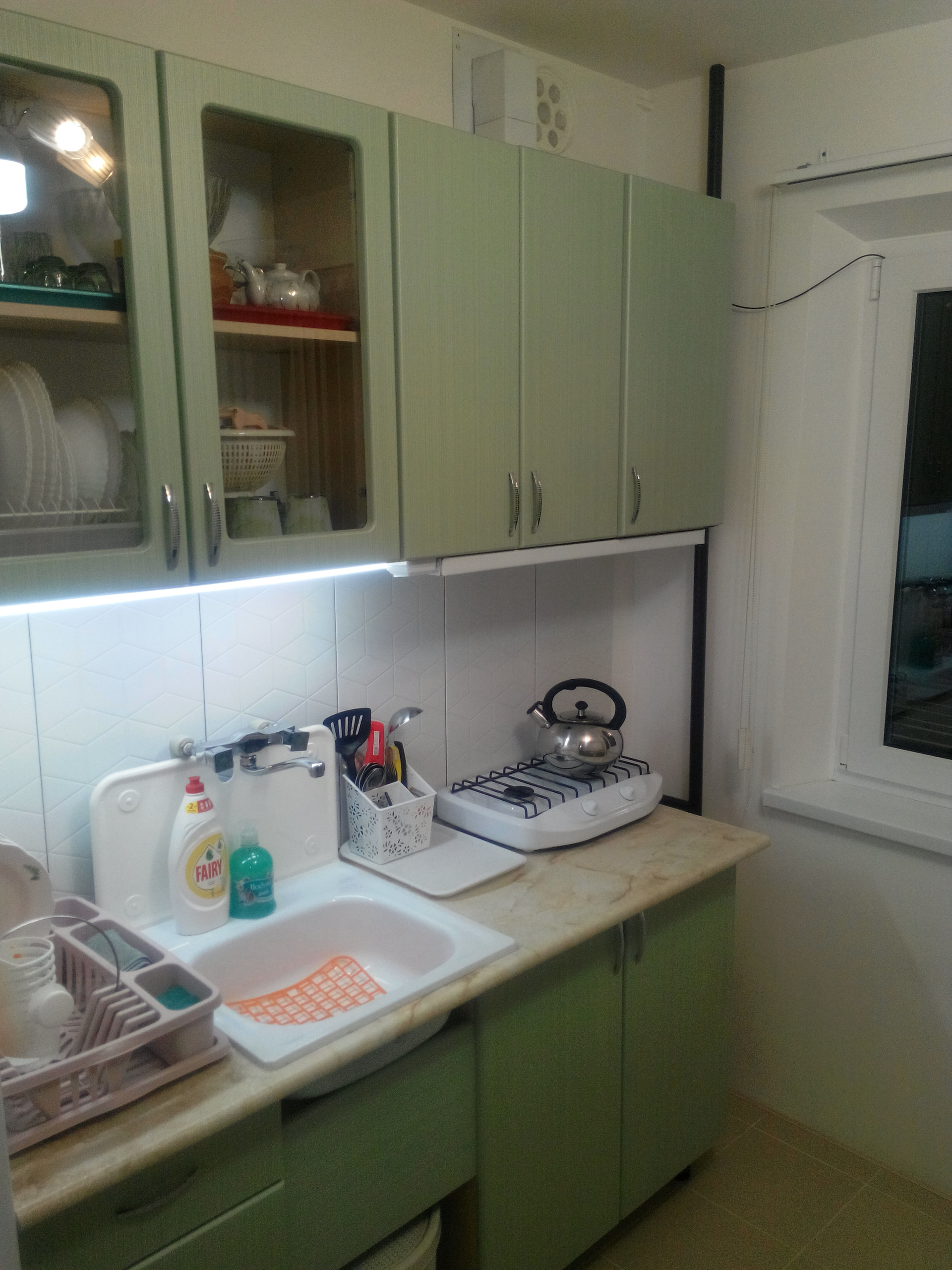 ▬ В КУХНЕ: - современная мебель и стулья; - холодильник, газ плита, микроволновая печь(в шкафе), электрочайник, керамическая и железная посуда; - освещение - люкс, пол - плитка, цифровое тв - 20 каналов, центральное газоснабжение и водоотведение