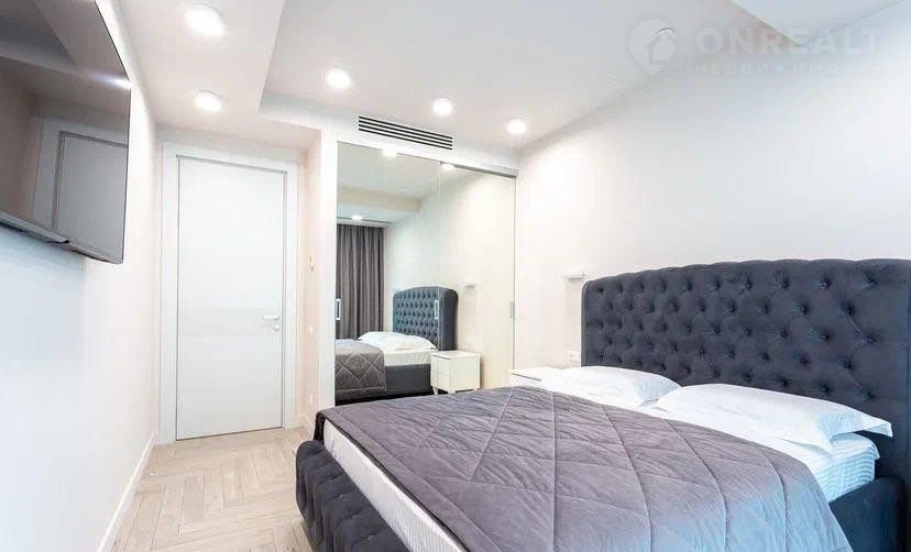Планировка : 3 спальни ,в каждой из которых двуспальная кровать ,просторная кухня-гостиная , большой балкон с мебелью , гардеробная ,3 сан /узла .