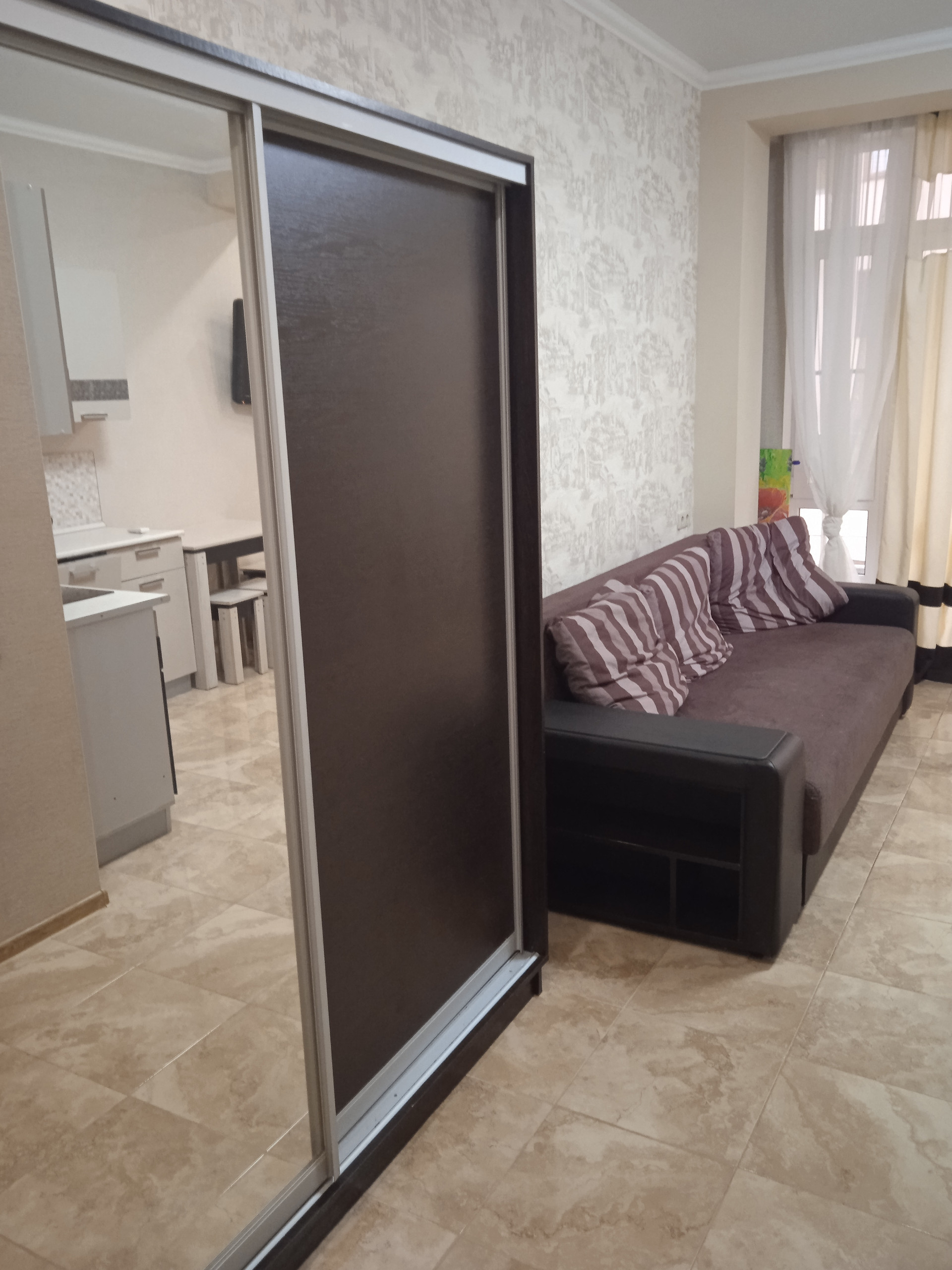 Сдам студию в Адлере, р-н жд вокзала. Развитая инфраструктура, магазины, школа, детсадик. Окна на тихую не проезжую улицу. На лето цена согласуется