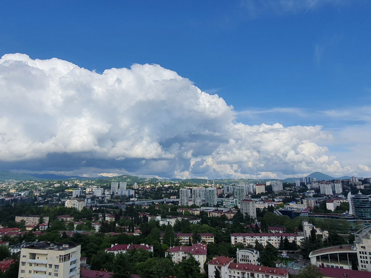 Черное море и центр города Сочи.
