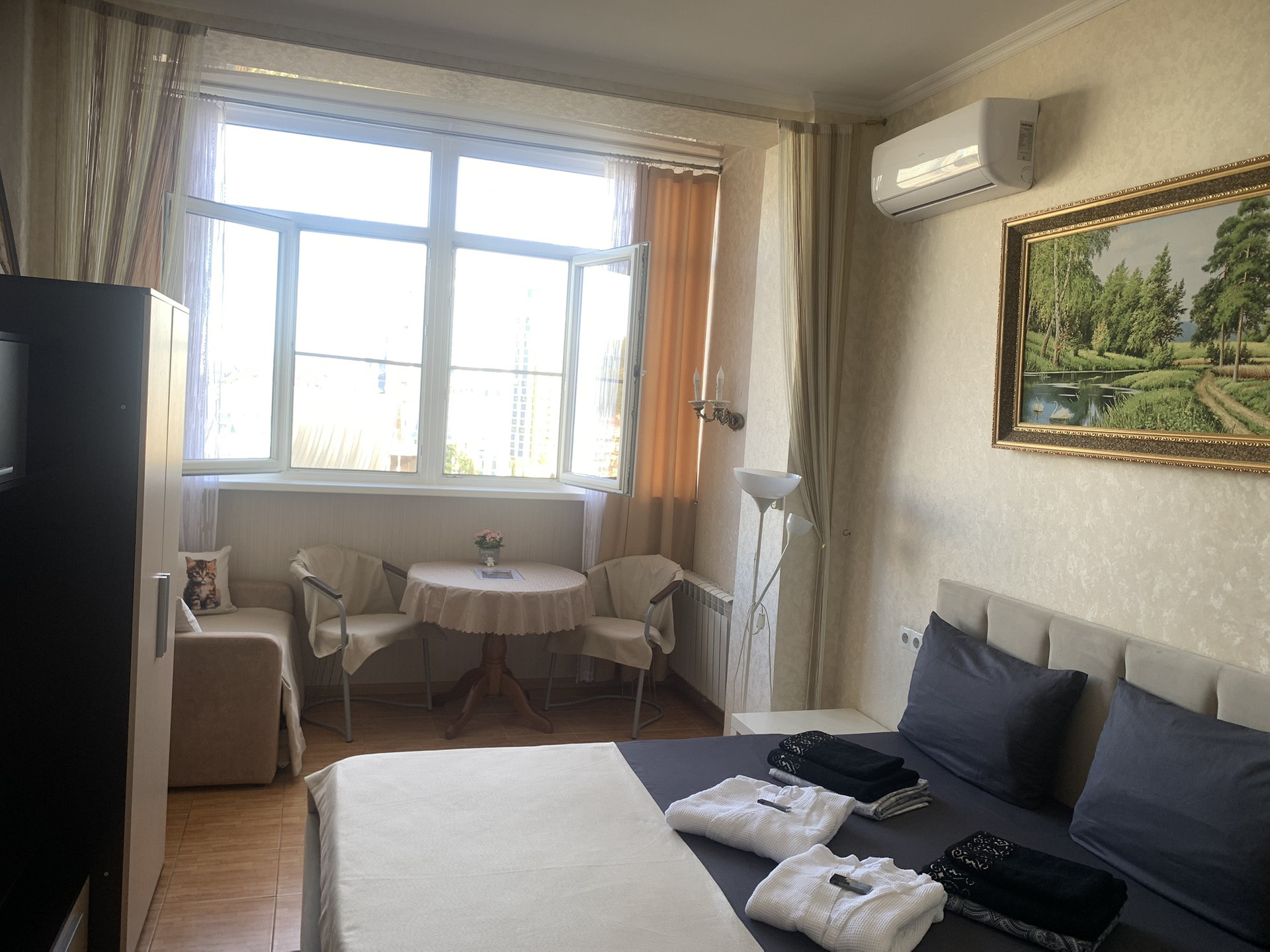В номере сделан хороший ремонт, с новой : душевой кабиной ,техникой и мебелью.