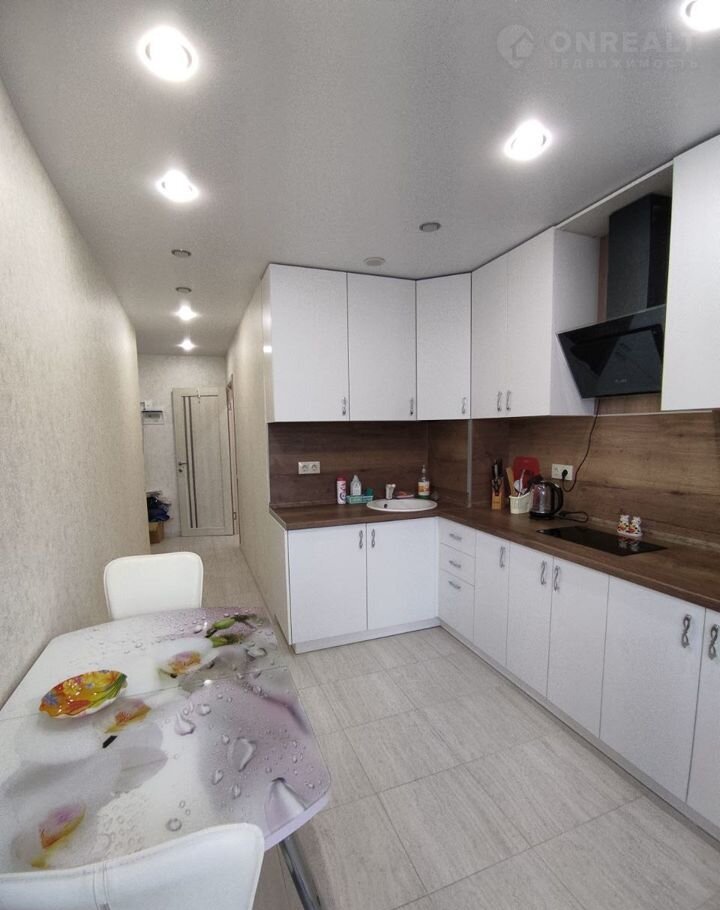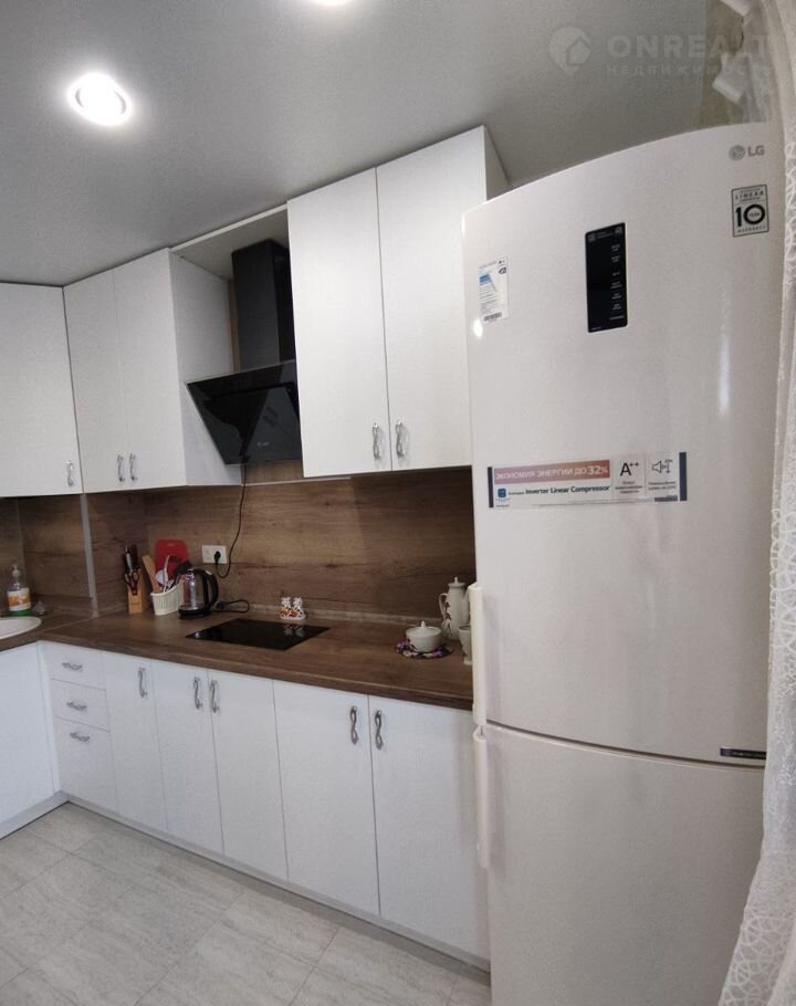 В квартире есть все необходимое для проживания, большой холодильник, варочная панель, вытяжка, электрический чайник, посуда, стиральная машина, кондиционер