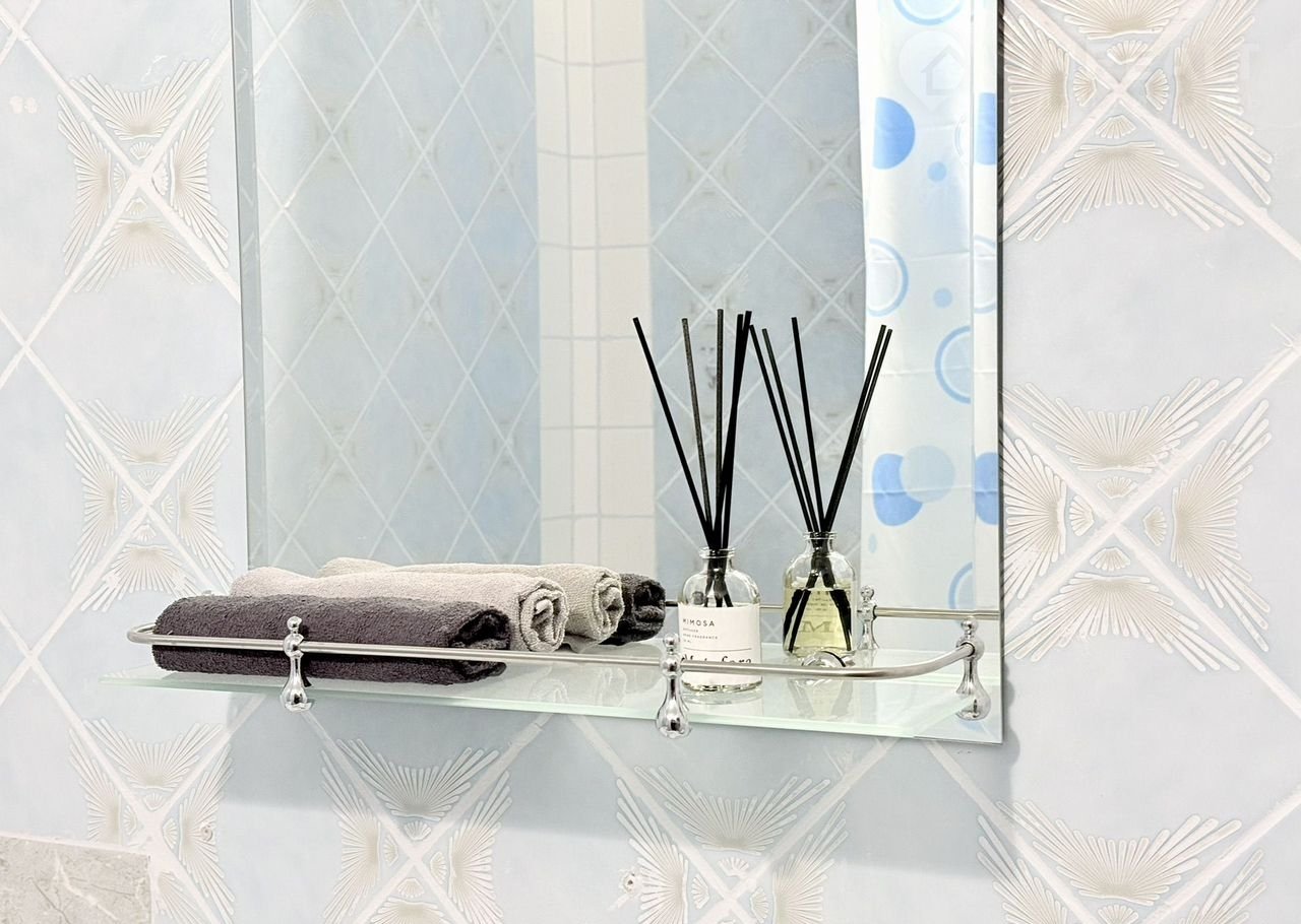 4. Ванная комната: раковина, зеркало, просторная душевая.