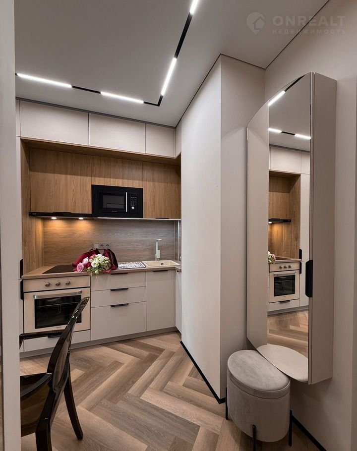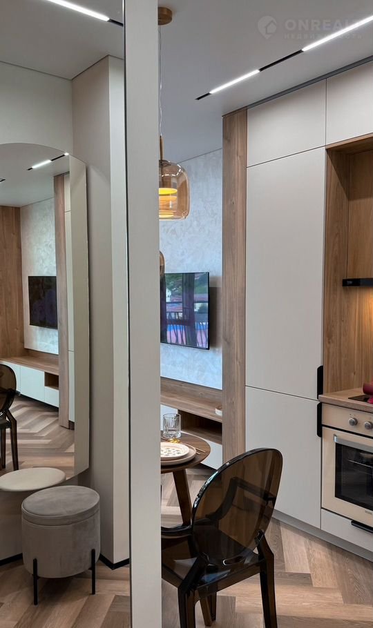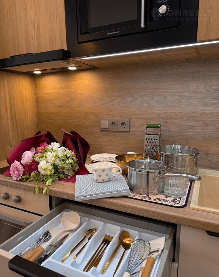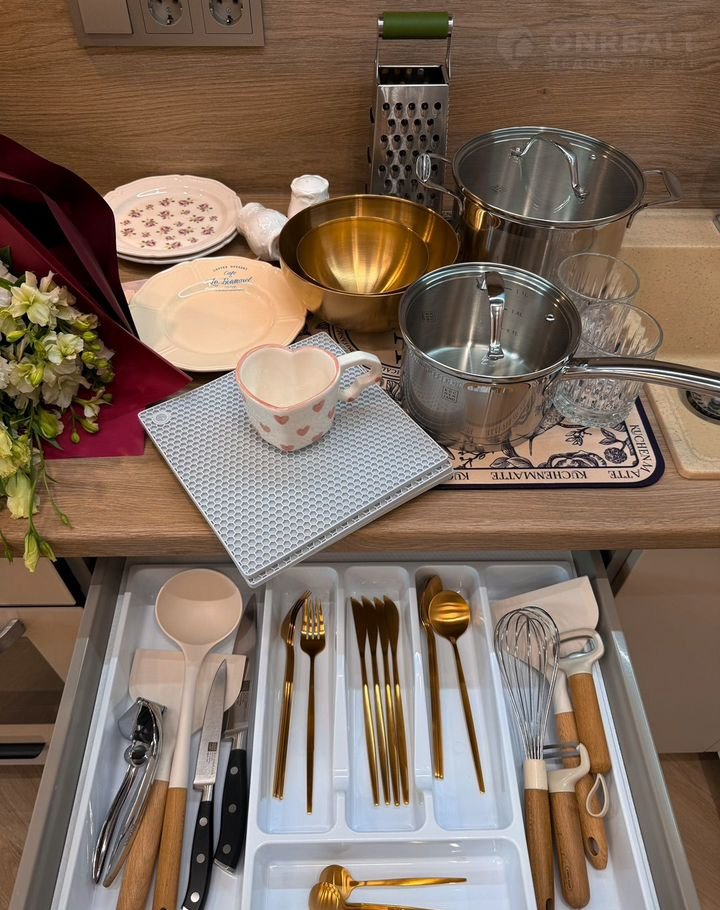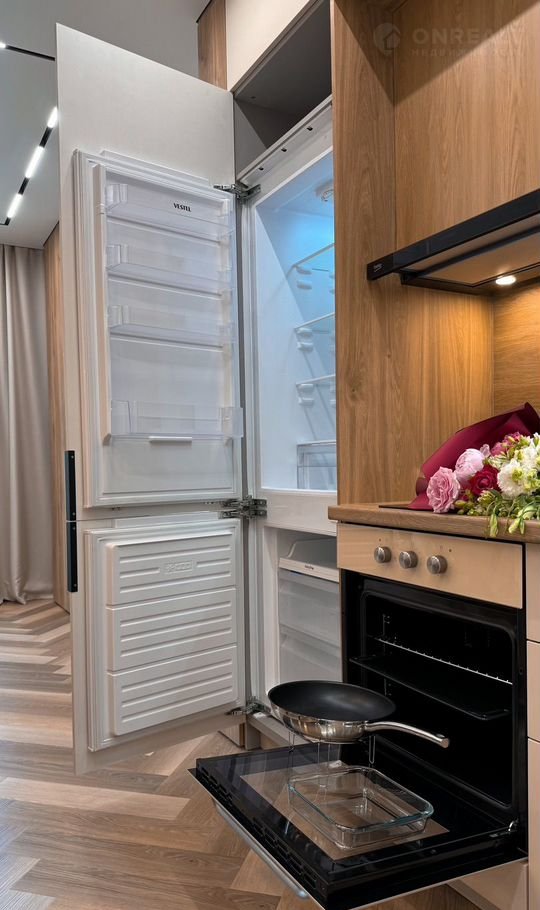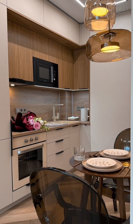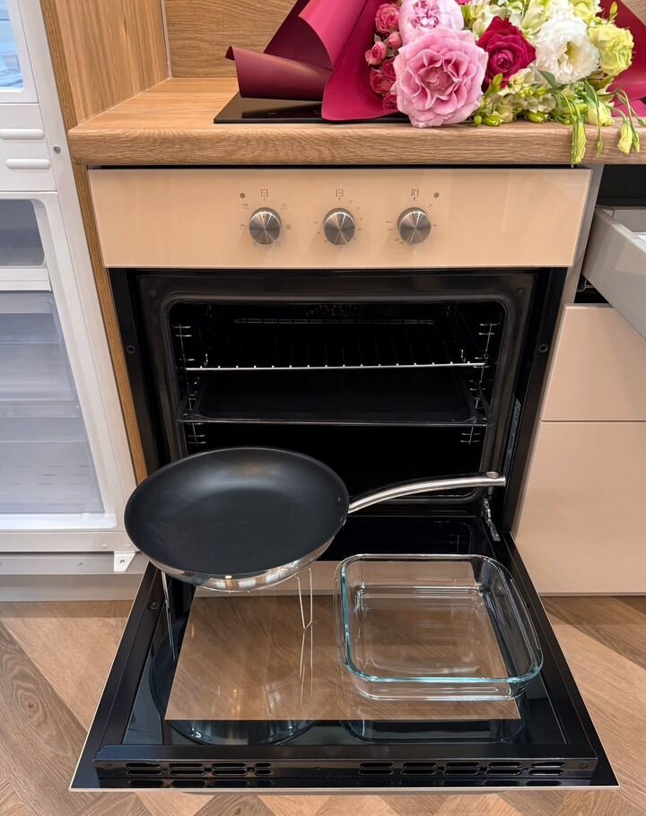 Кухня оборудована встроенным холодильником, морозильной камерой, индукционной плитой на 2 конфорки, духовкой Gоrеnjе - умная техника нового поколения с заботой о комфорте.