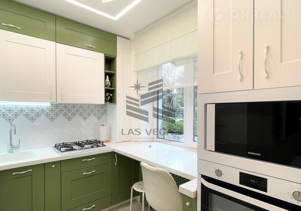 - кухонный гарнитур, газовая плита, холодильник, посуда, посудомоечная машина, микроволновая печь, духовой шкаф