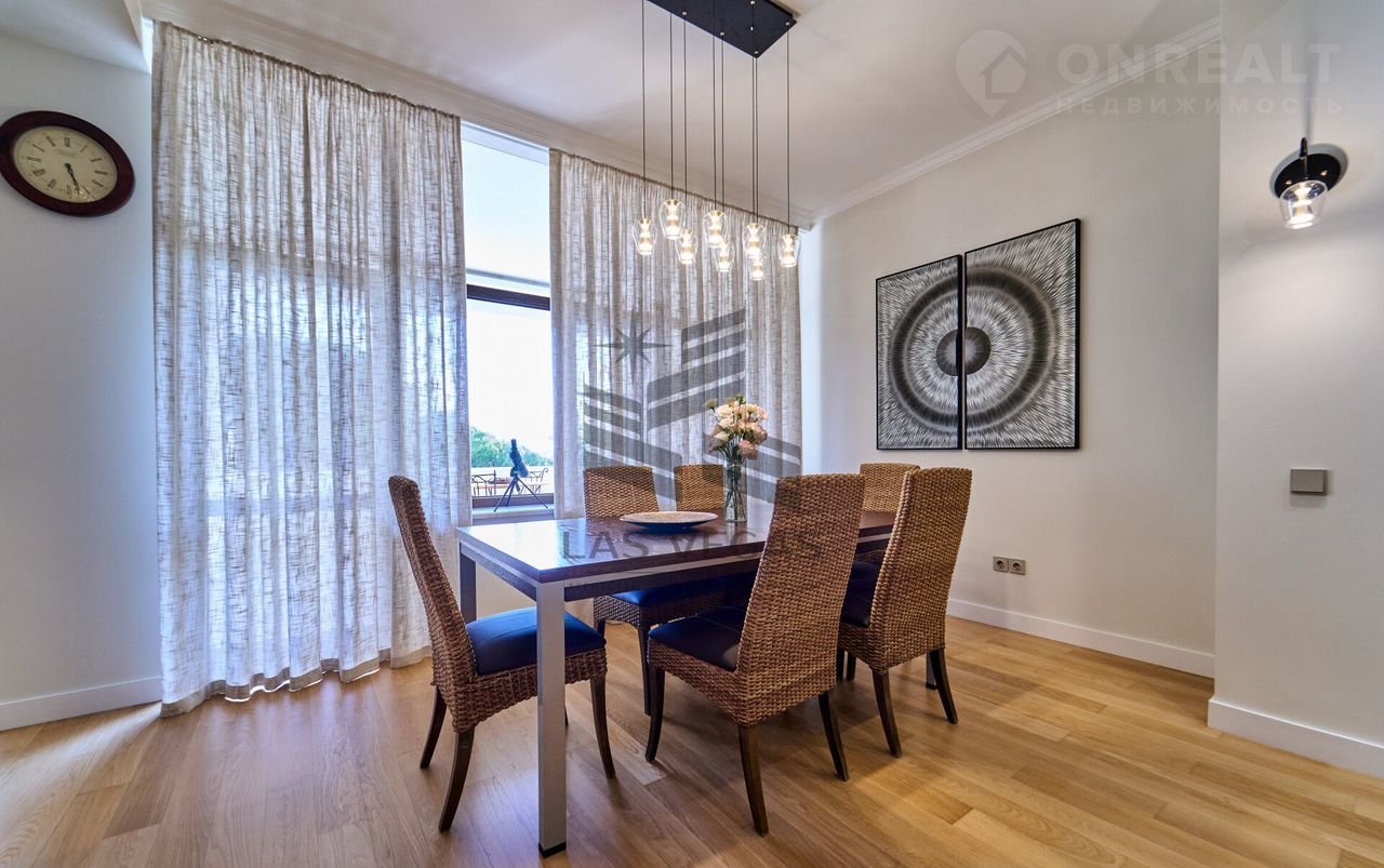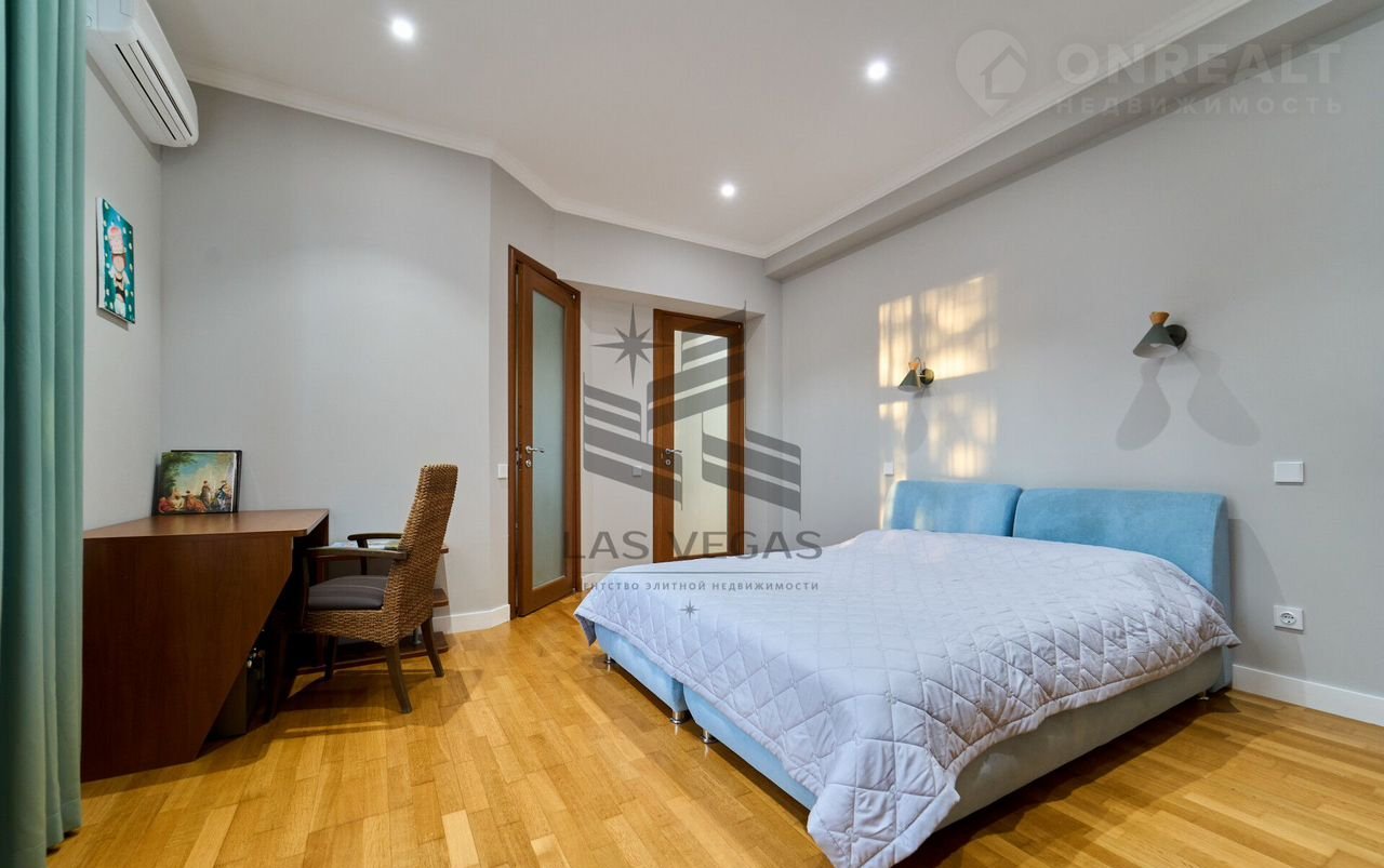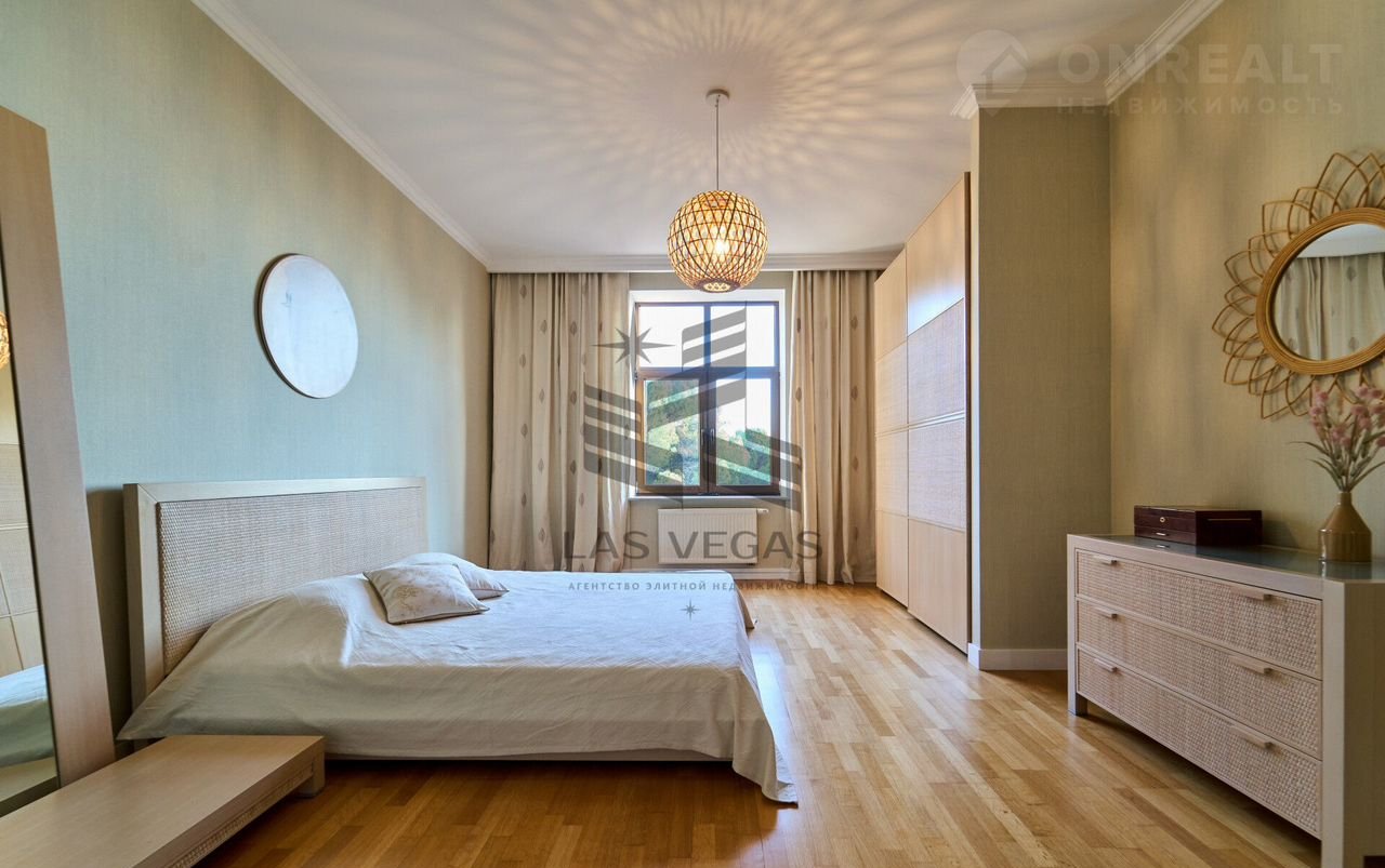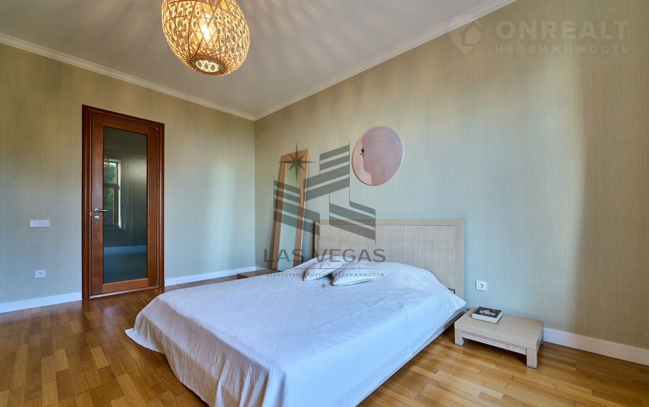 В квaртиpe 3 просторные спальни с сан узлами, 2 больших балкона, просторная гостинная, кухня, сауна с купелью.