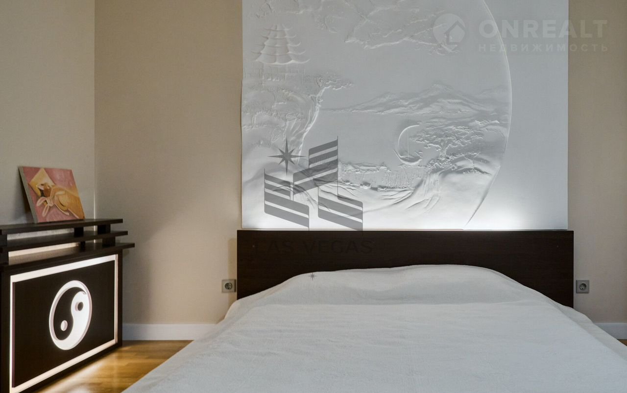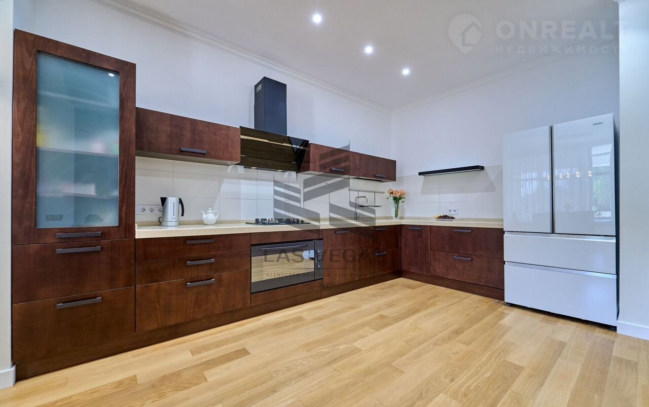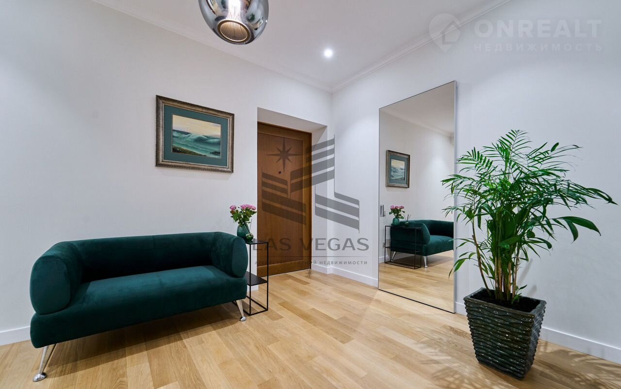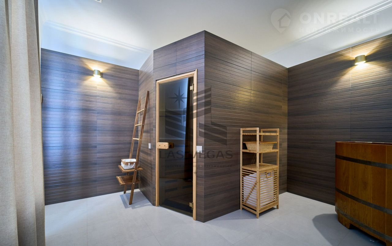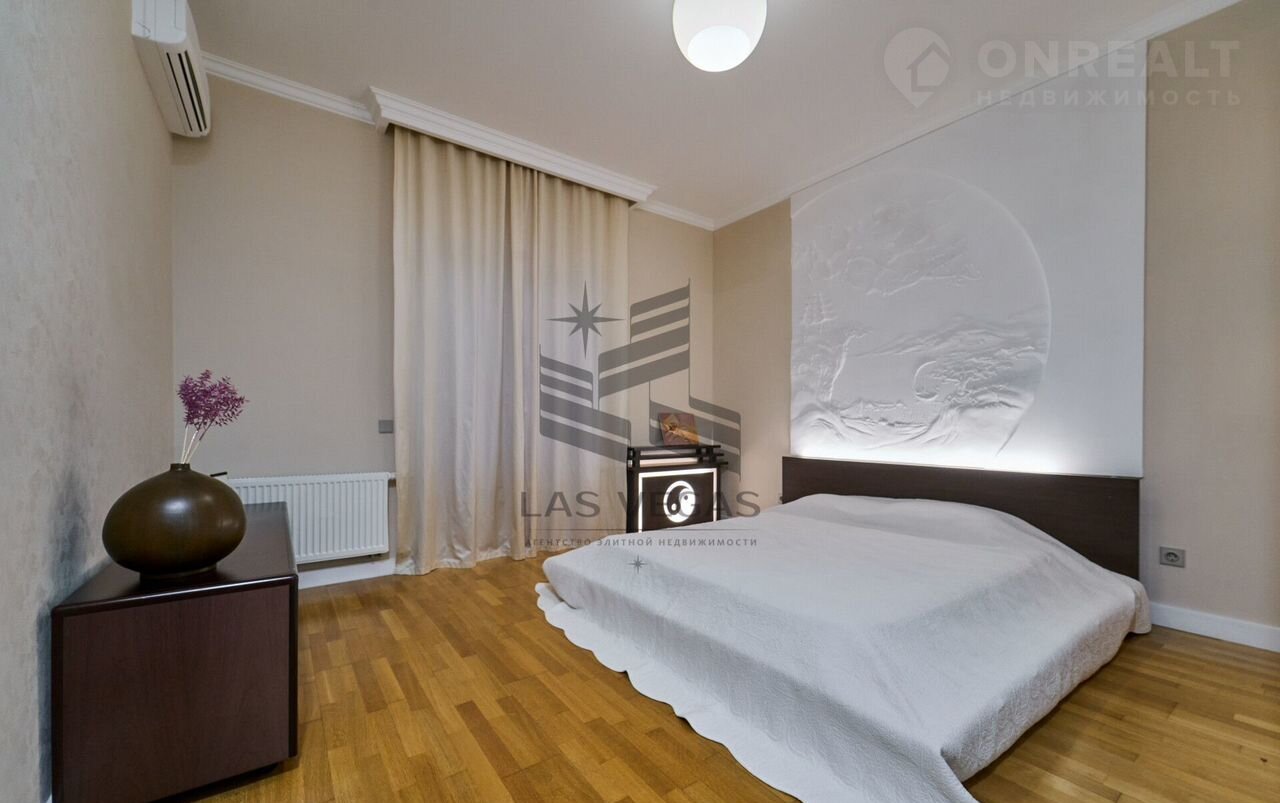 В квaртиpe 3 просторные спальни с сан узлами, 2 больших балкона, просторная гостинная, кухня, сауна с купелью.