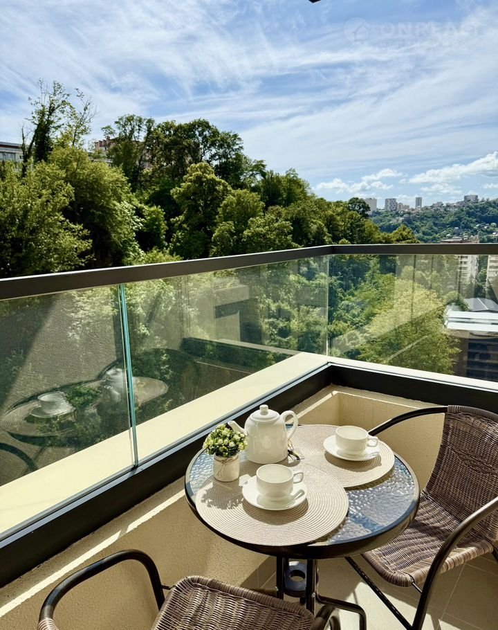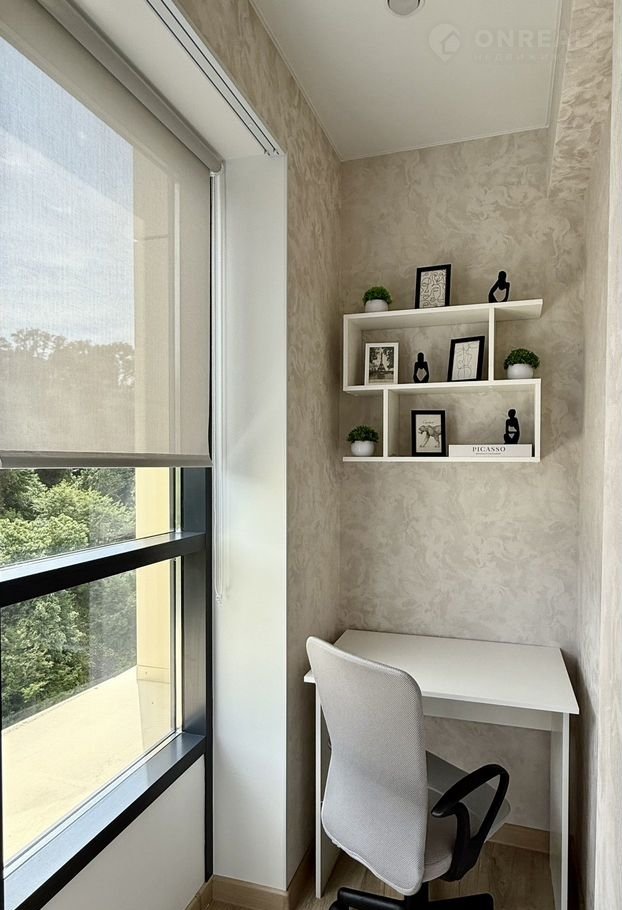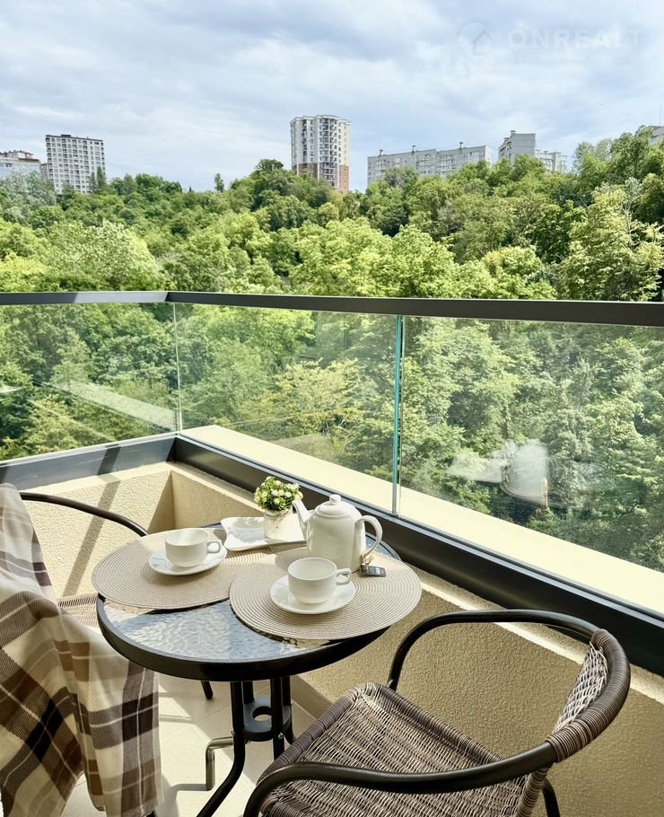 Окна квартиры выходят в парк, поэтому можно любоваться зелёным видом и слушать пение птиц. В квартире имеются два балкона (в спальне и на кухне) с потрясающим видом в парк. На балконе имеются столик и стулья, что располагает к приятному чаепитию поутру.