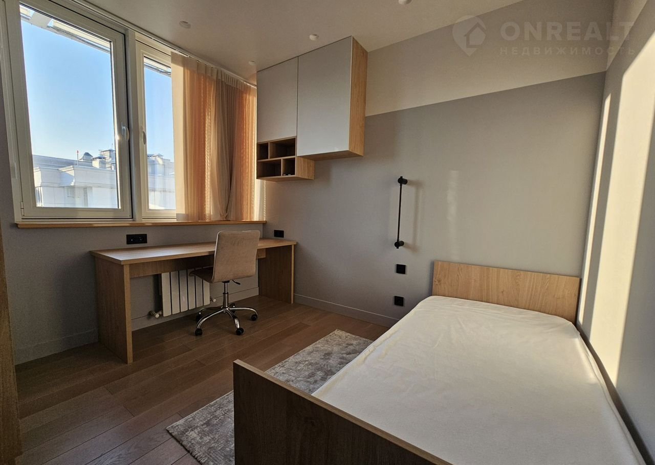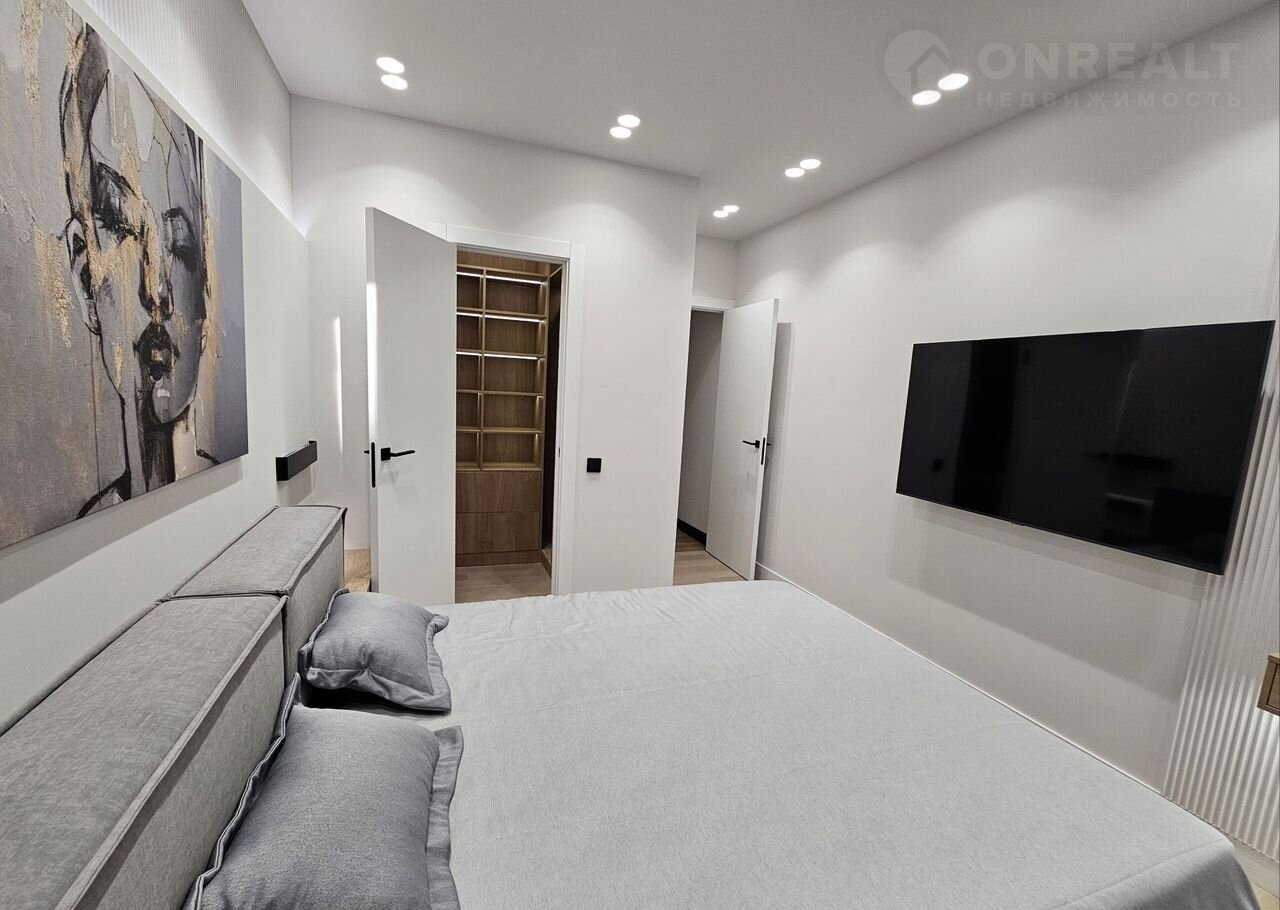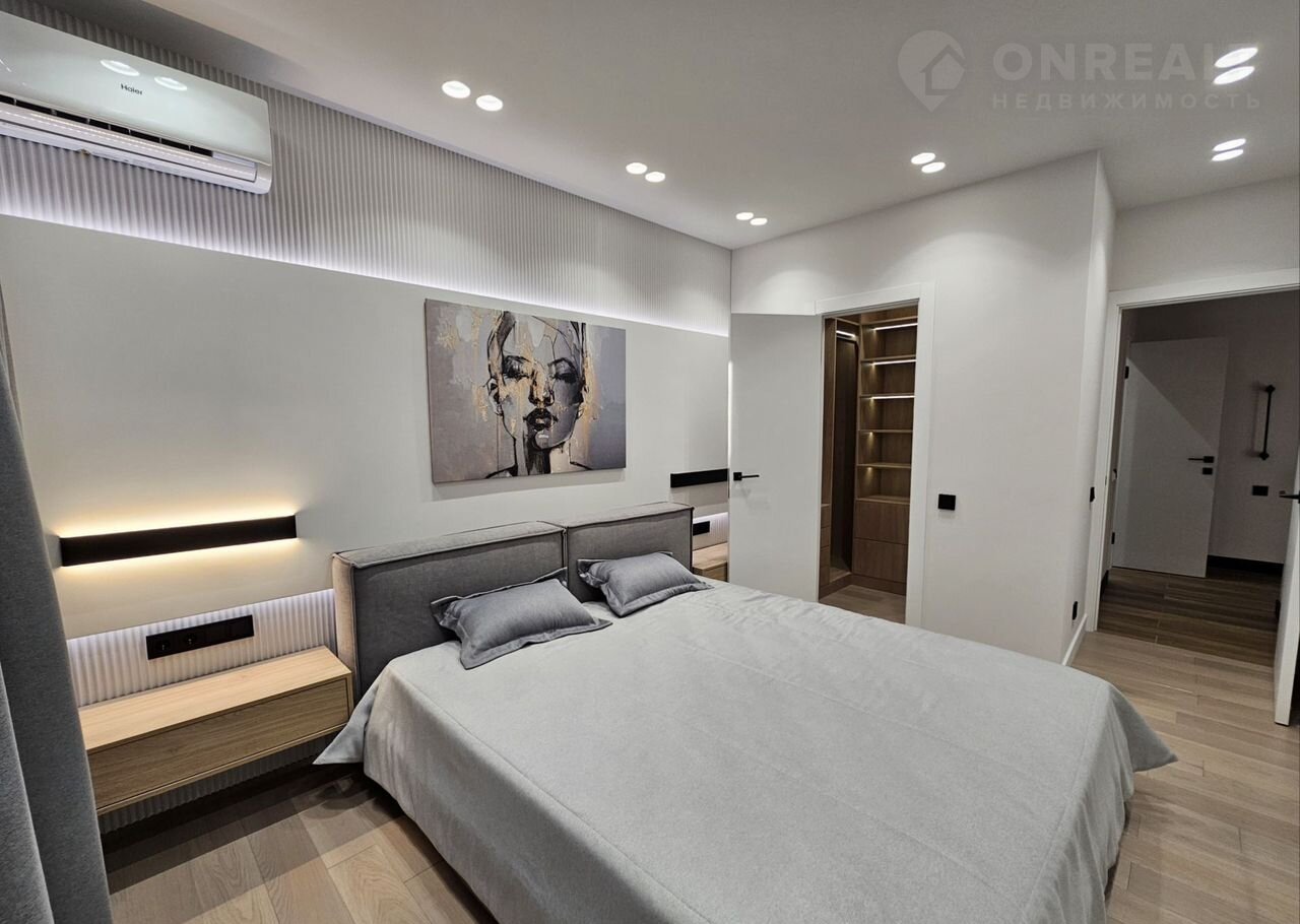 - Спальня №1: большая кровать, шкаф-купе, рабочее место.
