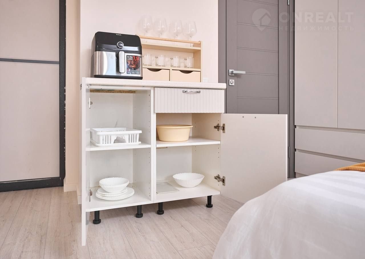 ️ Мини-кухня: холодильник, чайник, айрогриль, кухонный гарнитур, посуда