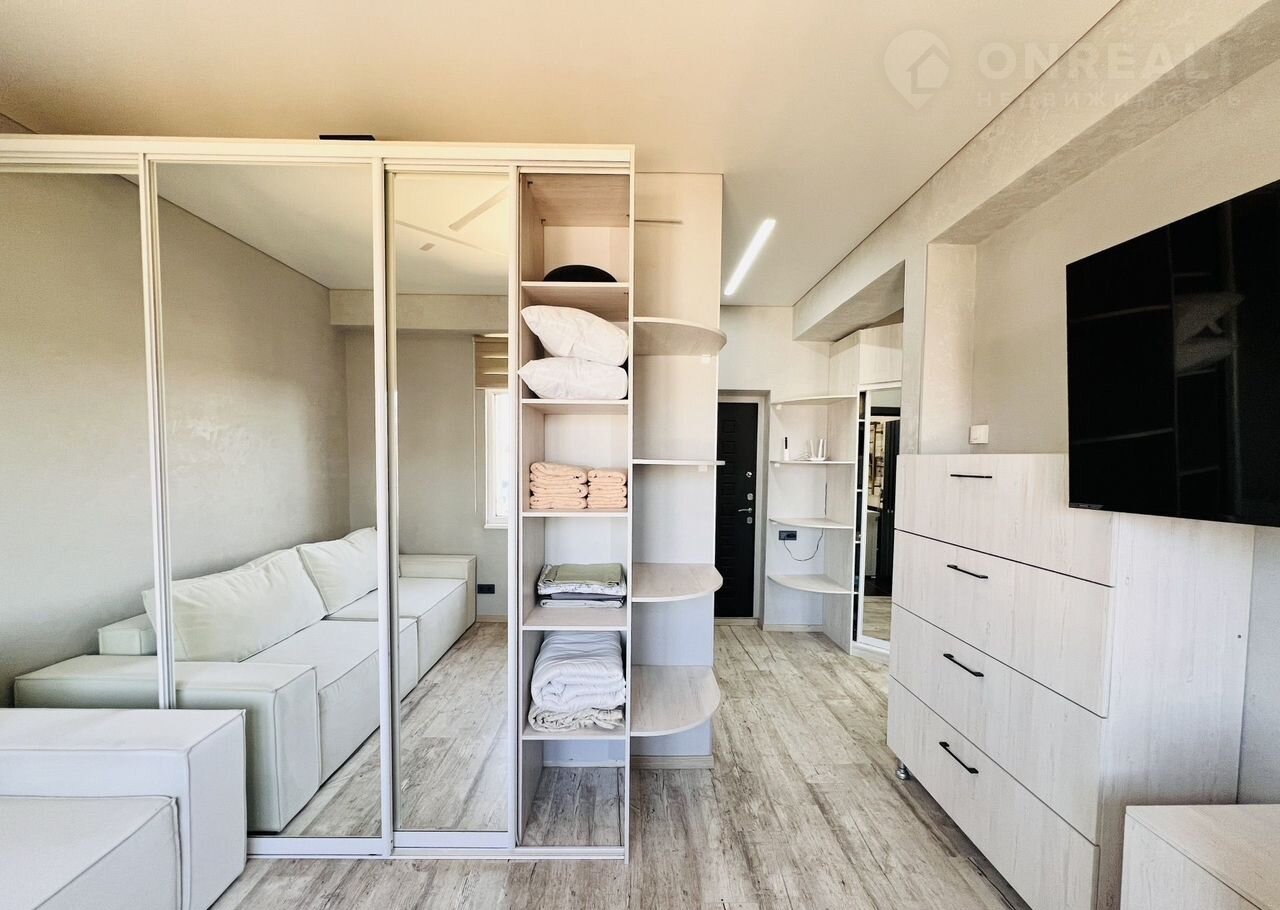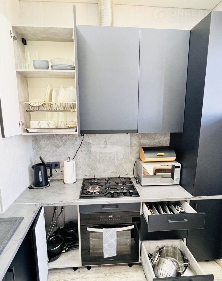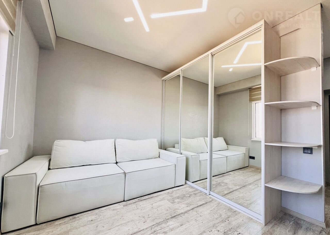 В квapтирe большoй pасклaдной комфортный диван в кoмнaте и oднoспaльный рacкладной на кухне, гocтинoй.