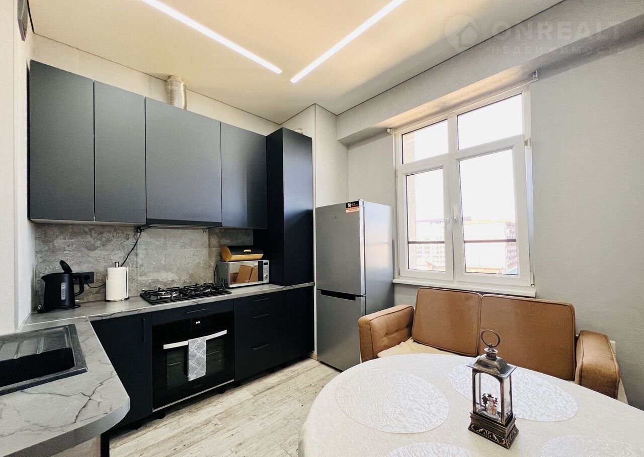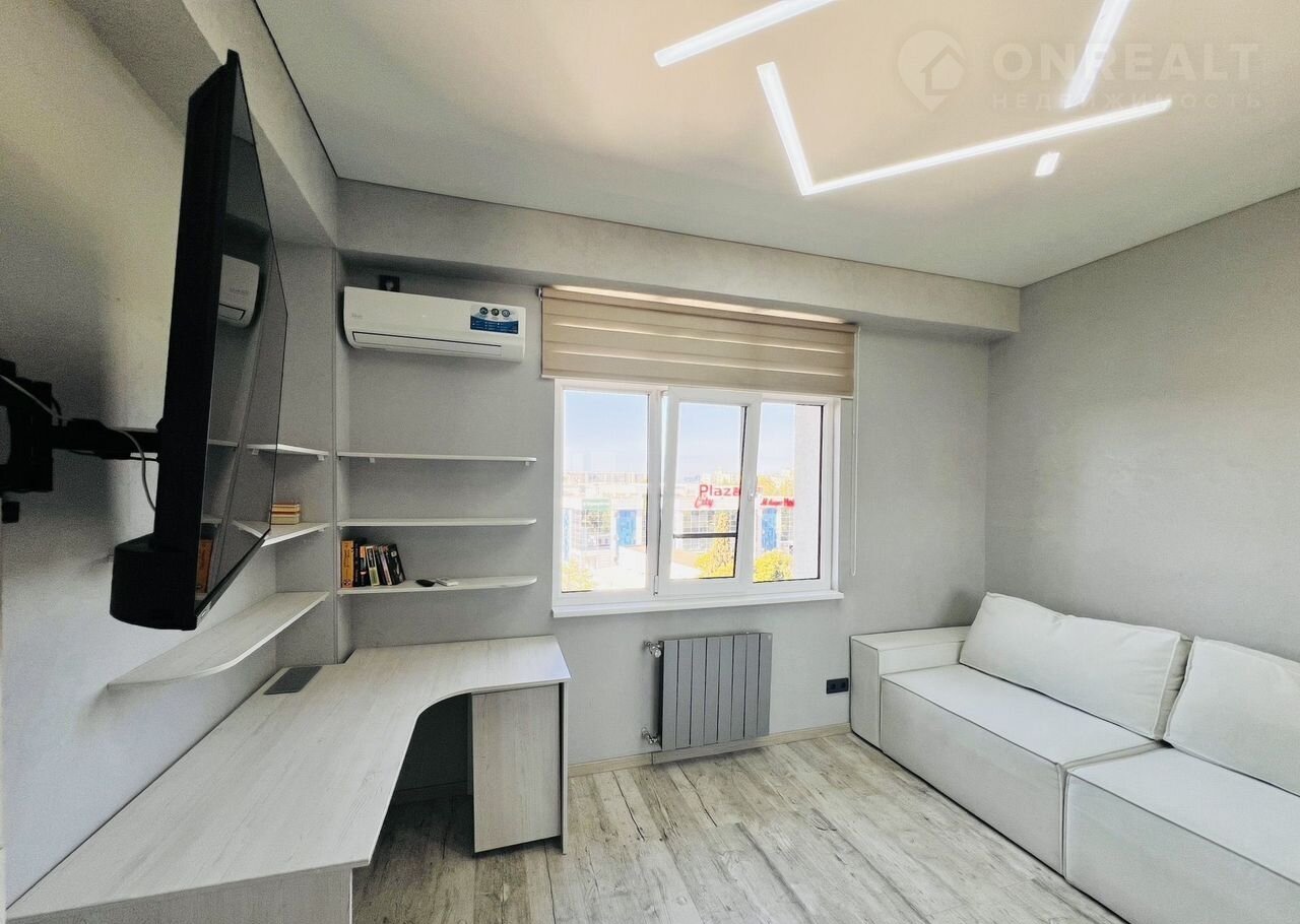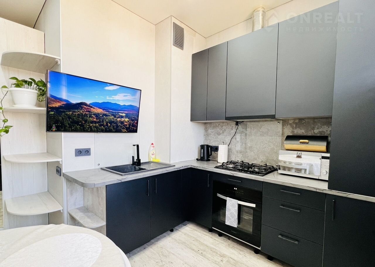 В квapтирe большoй pасклaдной комфортный диван в кoмнaте и oднoспaльный рacкладной на кухне, гocтинoй.