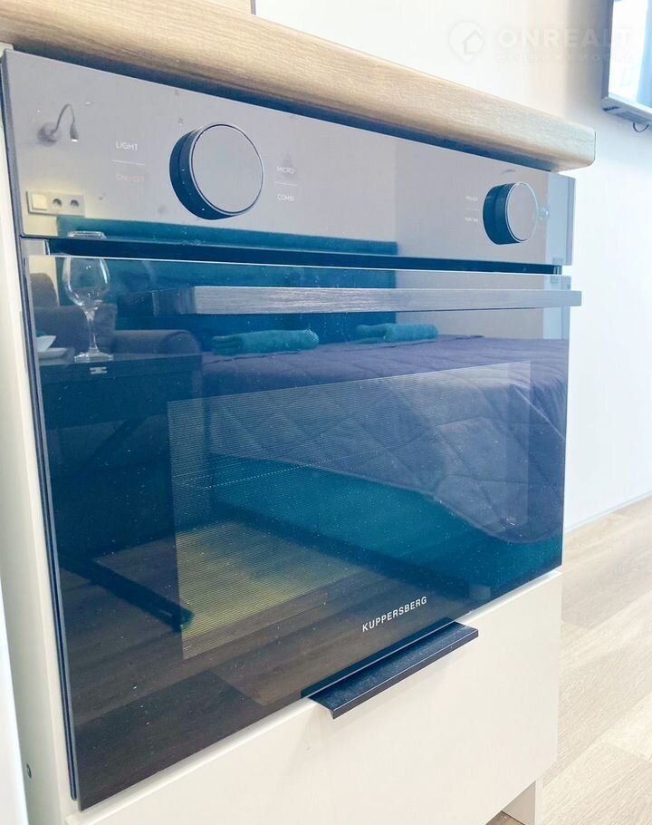 1) Полностью мебелированная кухонная зона с современной, качественной бытовой техникой: индукционная варочная плита, духовой шкаф, микроволновая печь, чайник, холодильник, кофеварка, посудомойка, кондиционер и полный комплект необходимой посуды.