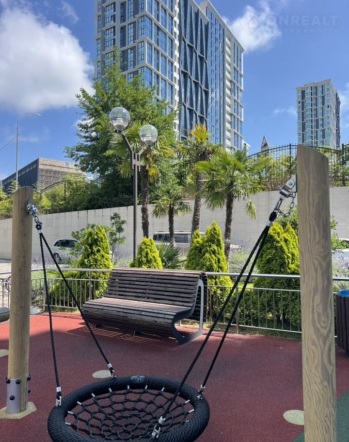На территории ЖК бизнес-класса "Сочи Парк" имеются яркие современные детские и спортивные площадки, мангальная зона.
