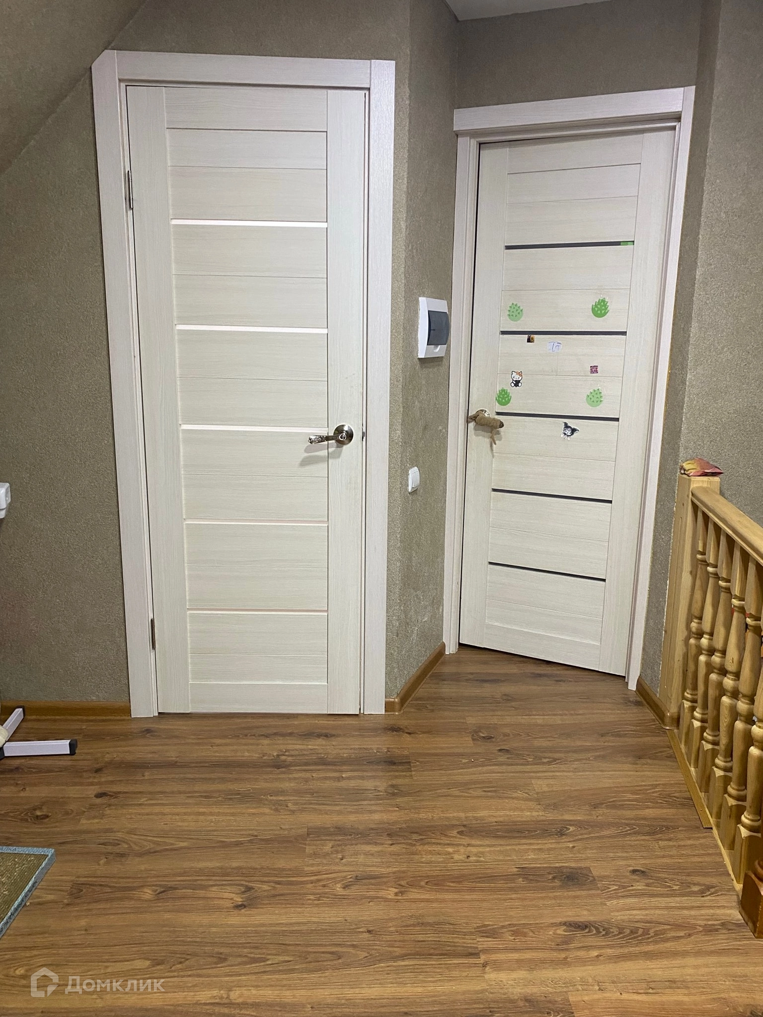 на втором этаже расположены 2 спальни и хол, оборудованный под детскую комнату, установлены хорошие межкомнатные и входная двери, установлена качественная электропроводка во всем доме.