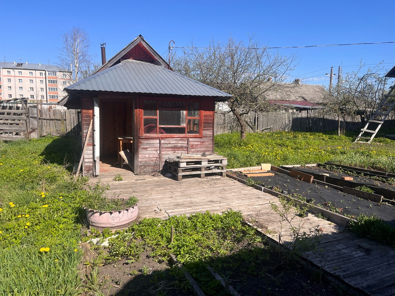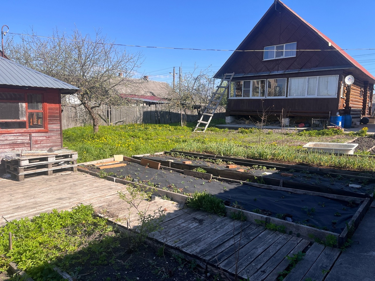 ✔На участке гараж,сарай,баня 3х9 на ленточном фундаменте,дровяник
