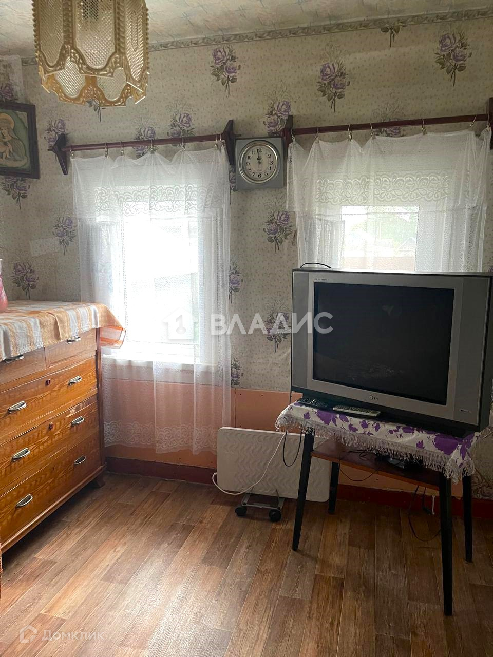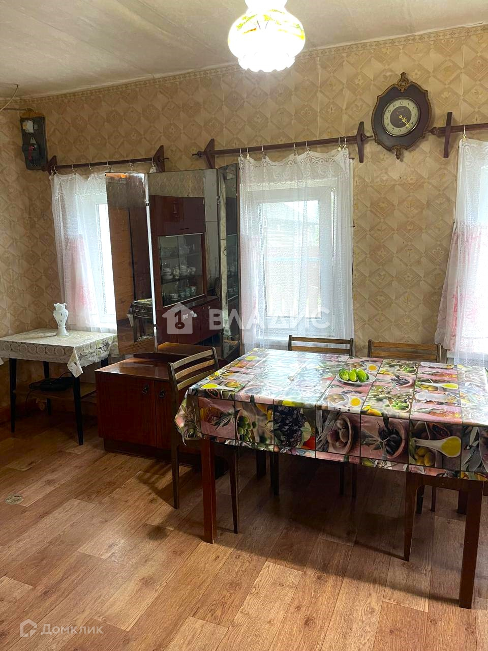 Деревянный с тамбуром , внутри две комнаты, большой двор, окна пластик, остается вся мебель и техника.