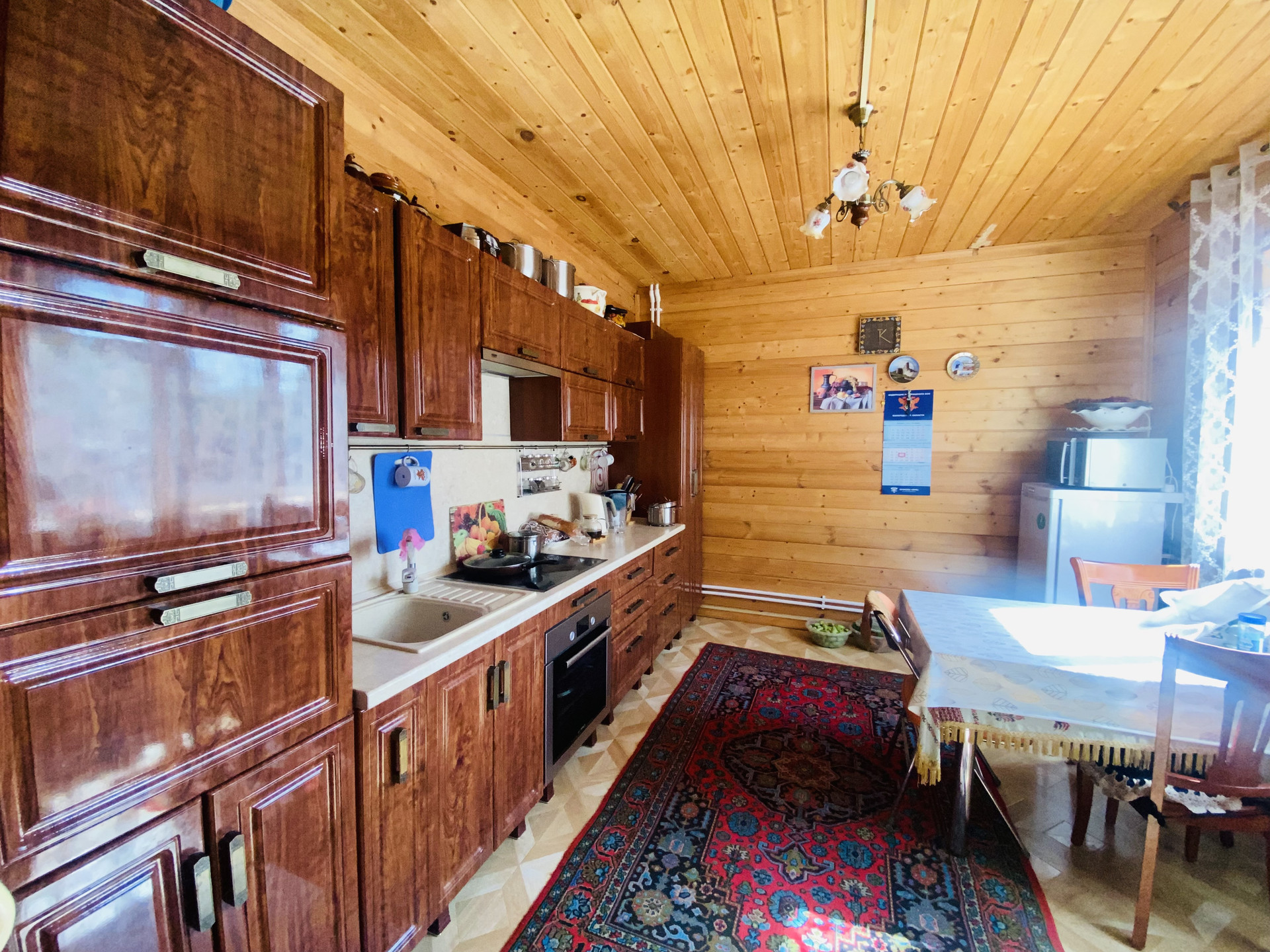имеется подпол (не топит), все окна пластик, металлические входные двери, отопление и горячая вода от электрокотла, установлена насосная станция, канализация - центральная, газ идет по границе участка, электричество мощностью 15 кВт.