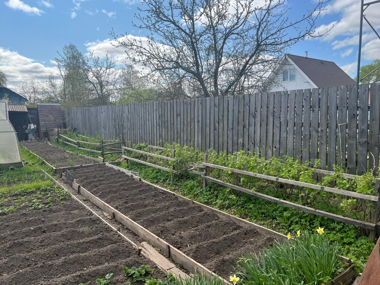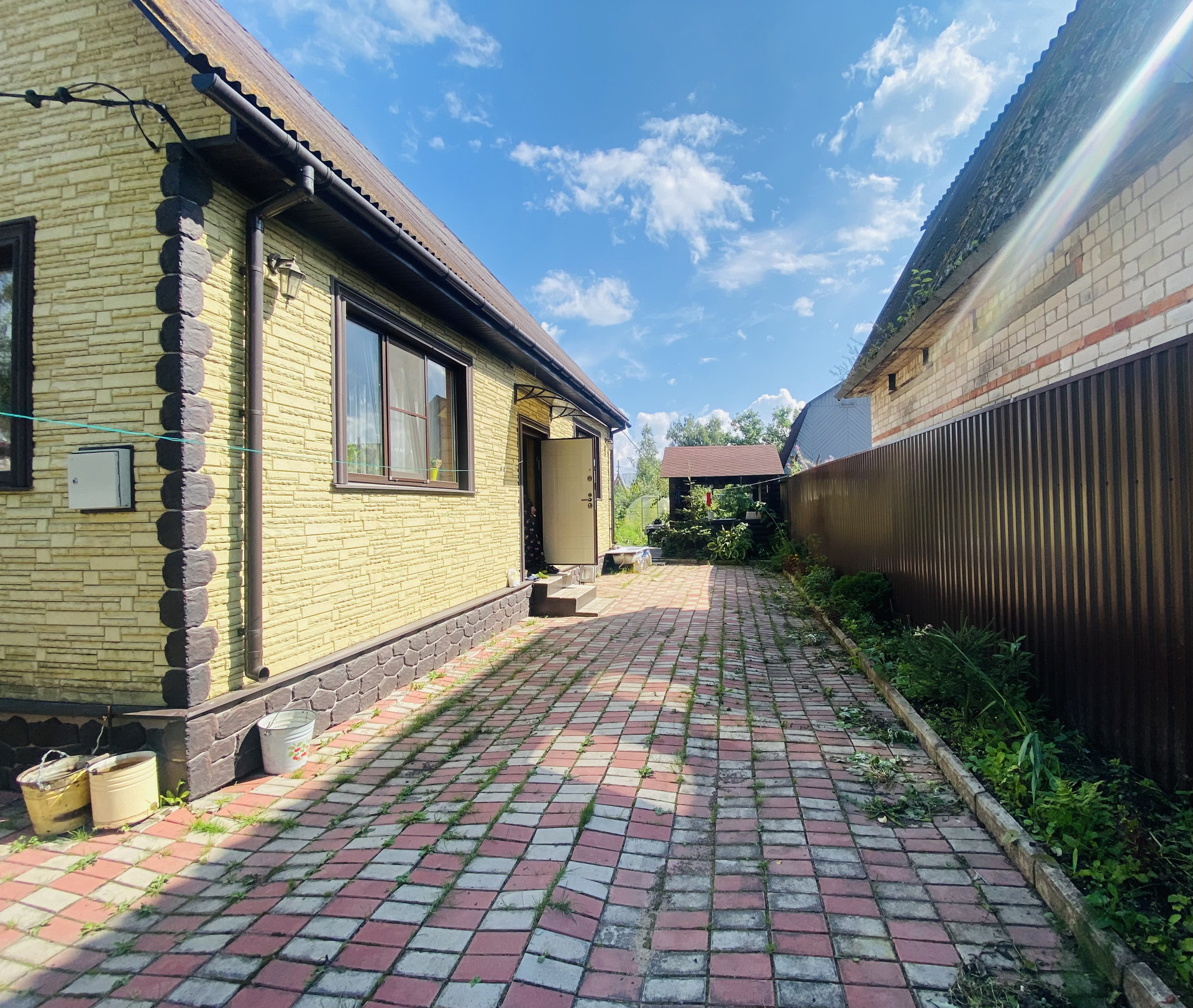 Земельный участок площадью 541,0 кв.м. в собственности, проведено межевание, постоянно обрабатывается, имеется много насаждений, плодовых деревьев, установлена теплица 6*3. На участке установлена бревенчатая беседка 3м*3м. Территория перед домом выложена брусчаткой, установлены ворота из металлопрофиля (откатные, автоматические)