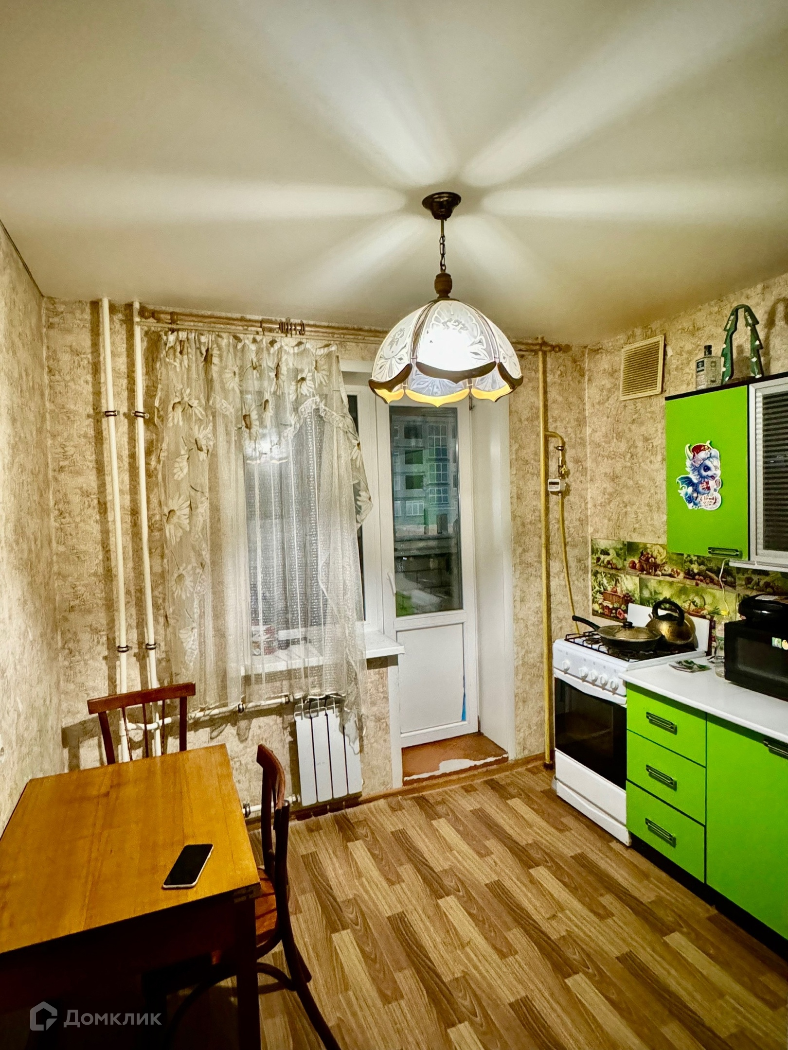 -Все окна в квартире заменены на пластиковые, балкон также в пластиковом остеклении, натяжные потолки, полы бетонная стяжка, напольное покрытие линолеум, заменены межкомнатные и входная двери.