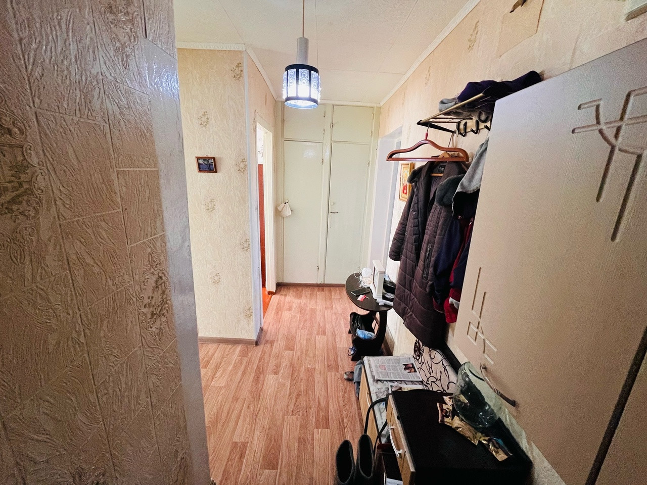 ✔окна пластиковые стеклопакеты в маленькой комнате и кухне,в большой комнате окно дерево,балкон застеклен пластик,пол кухня,прихожая -линолеум,в маленькой комнате -ламинат,в большой-деревянный,покрашен,натяжные потолки,хорошая входная дверь ,с/у раздельно:пластик туалет,плитка -ванная