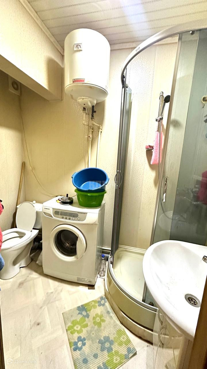 - Ванна отделана пластиковыми панелями, остаётся в подарок душевая кабина, водонагреватель, стиральная машина