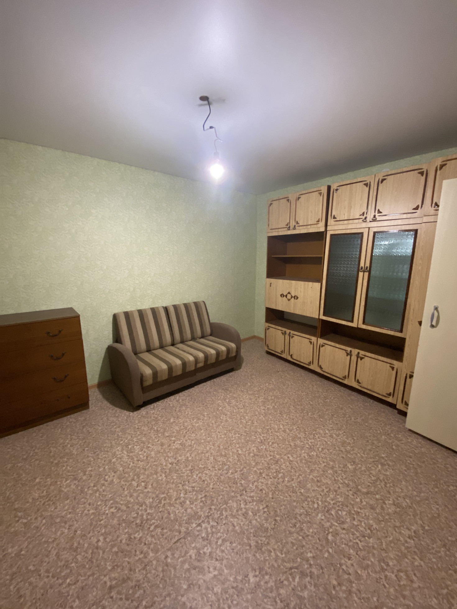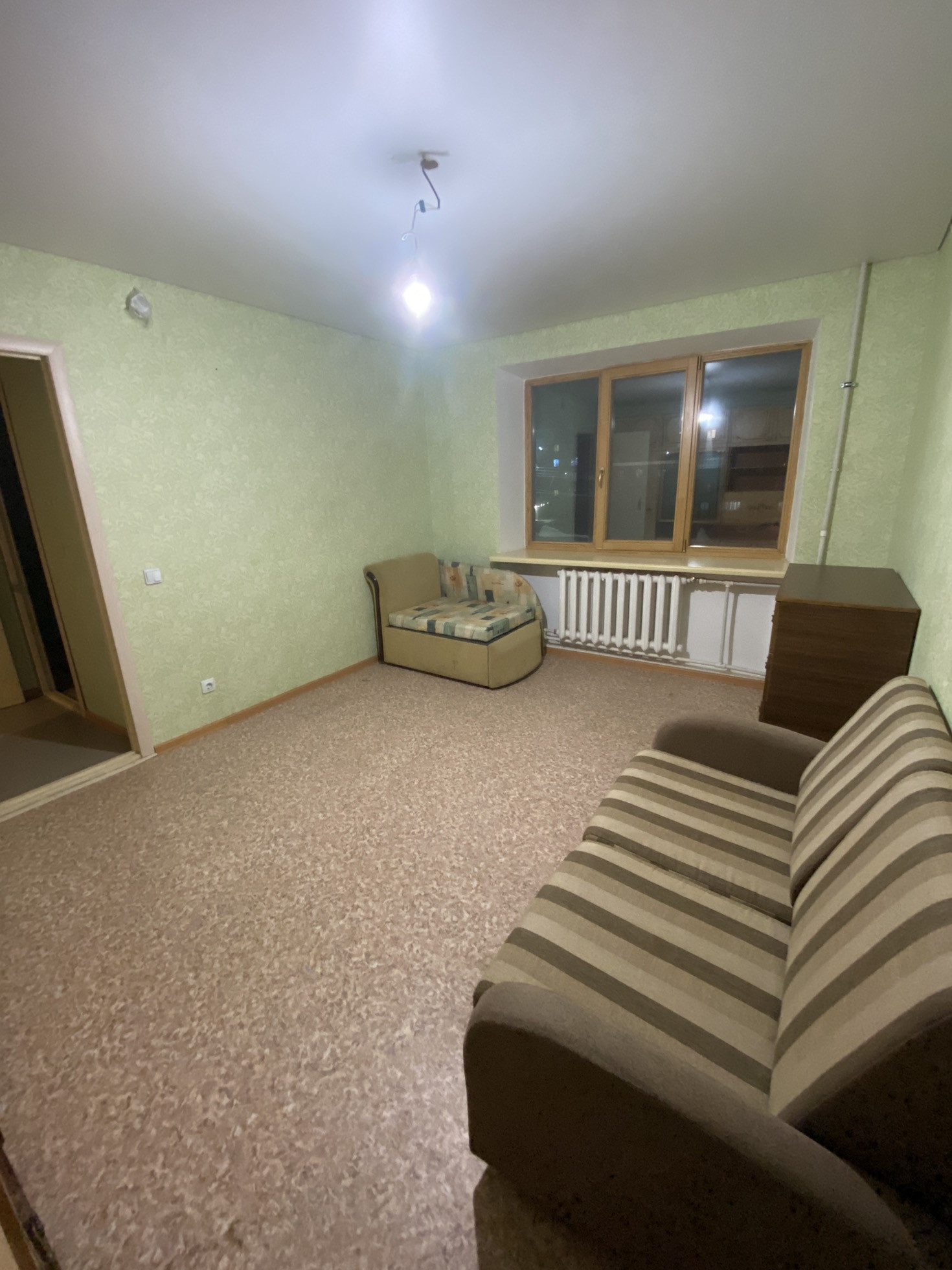 В квартире установлены деревянные евро окна. Потолки натяжные, входная дверь железная. В комнате и на кухне линолеум, в остальных помещениях плитка. Санузел раздельный, трубы пластик, счетчики. Большая кухня, сделан косметический ремонт. Вся мебель, что на фото, остается. Заезжай и живи.