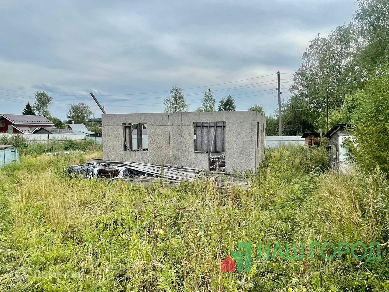 -Участок ровный, огорожен забором из профлиста, межеваный, на участке есть электричество, вода, сделан септик, в ближайшее время планируется подведение природного газа! На участке стоит каркасный дом незавершённого строительства. Каркас уже под снос, а фундамент крепкий(ленточный)! Есть кессон и летняя веранда.