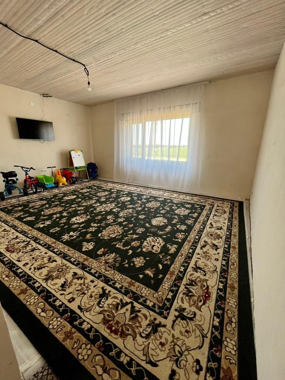 Площадь дома -105 квадратов, площадь двора - 6,5 соток.