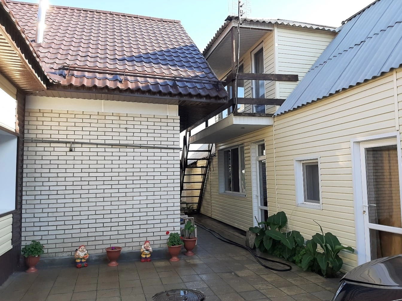 Во дворе выложена плитка, имеется собственная скважина и 4 канализации