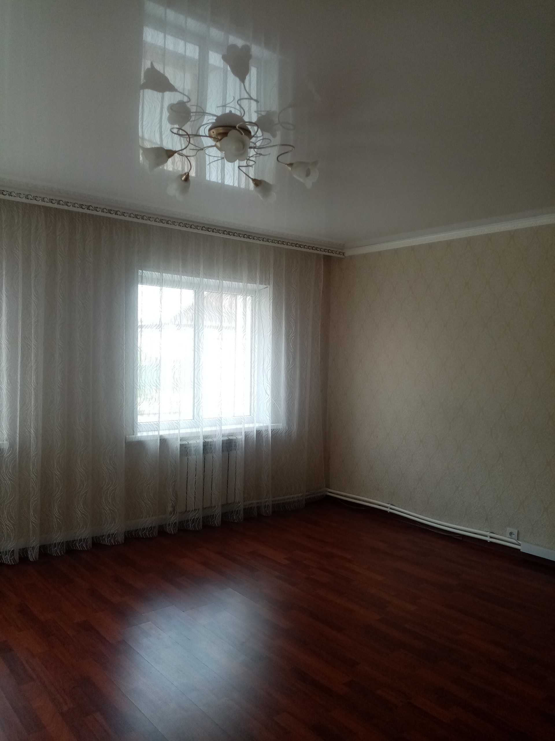 В доме: 3 спальни, санузел, кухня. Ремонт косметический с натяжными потолками, кондиционером. Тёплые полы в санузле и прихожей. Проведена новая электропроводка и отопление с двухконтурным котлом.