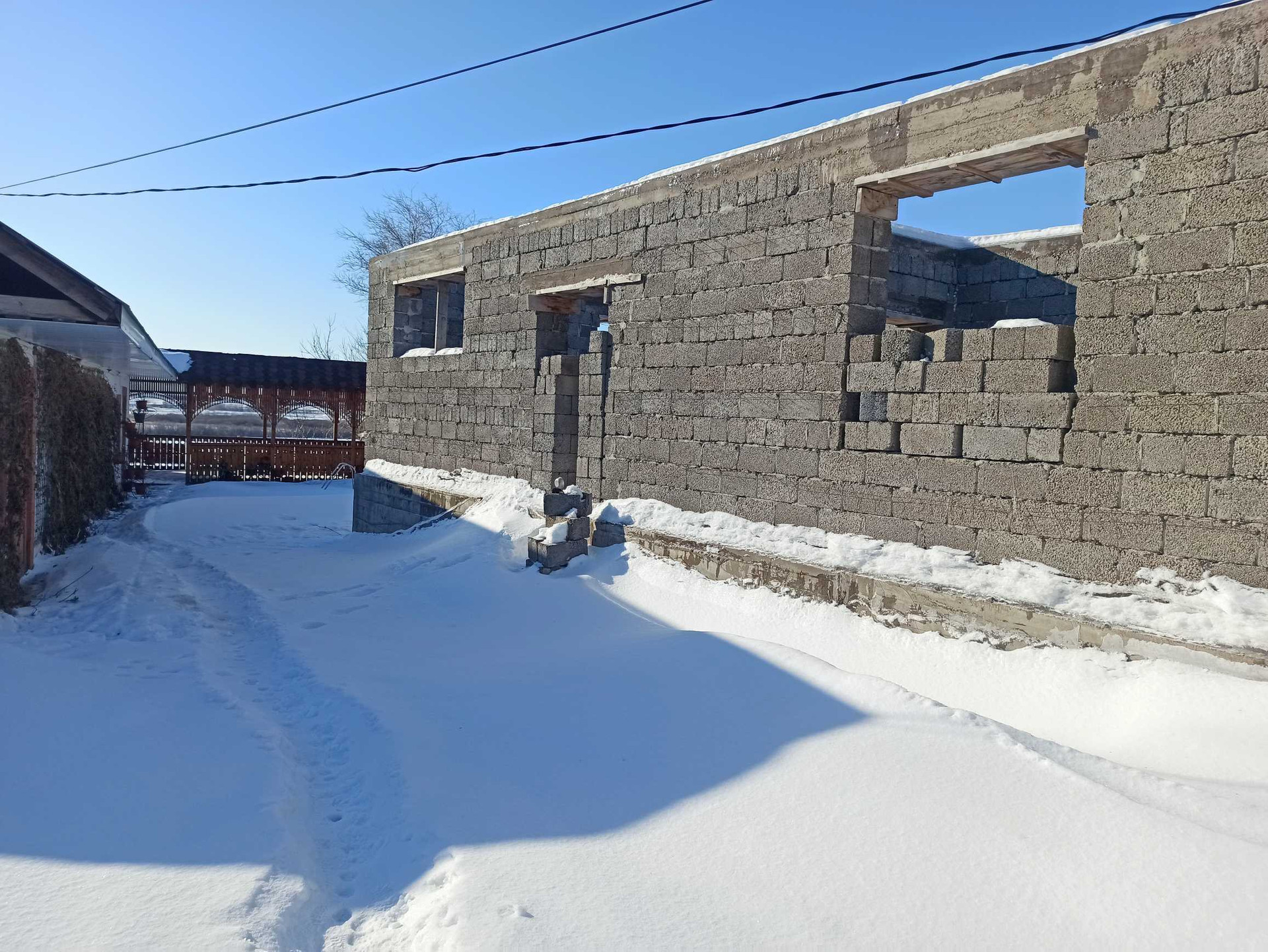 Недострой 93,9 кв. м, из керамзитоблока, фундамент залит на сваях, предназначен для постройки двухэтажного дома, имеется подвальное помещение.