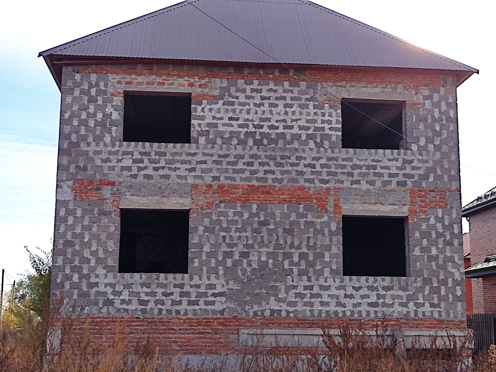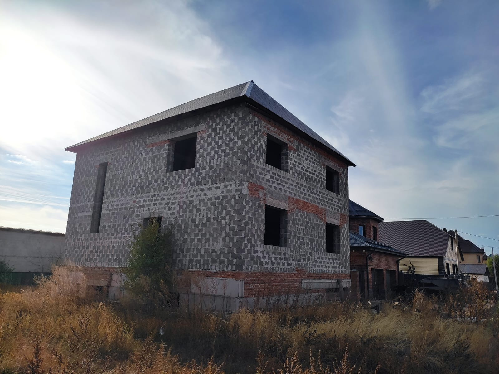 Продается незавершенный строительством дом, по улице Пригородная 56, площадью 138 кв.м, свободной планировки. На цокольном этаже предусмотрен гараж под авто. Дом недострой, но по документам оформлен как жилой дом. Один взрослый собственник. Рядом стоящие дома все застроены и уже живут. Электричество на участке, газ, вода центральная на границе с участком. Дом построен на капитальном фундаменте, материал стен - керамзитоблоки, крыша -профлист, перекрытие- плиты. Просторный участок 7 соток. Дом расположен в престижном районе нашего города. В пяти минутам ходьбы остановка общественного транспорта. Также в шаговой доступности магазины.